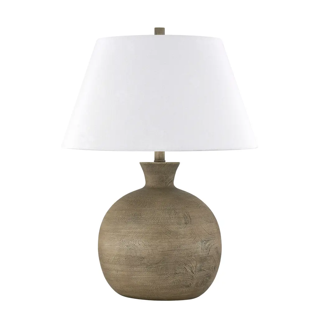 Add a natural touch to your home decor with the Angela 26" Table Lamp. This resin lamp features a round, wood-like base in a beautiful brown finish with grey undertones. Topped with a striking white linen blend empire shade, the Angela lamp provides a touch of elegance while diffusing light softly and warmly. Perfect for living rooms, bedrooms, or any space that needs a blend of rustic charm and modern sophistication, this lamp enhances your interior with its versatile and stylish presence. This product uses a 100 watt standard bulb (not included).FeaturesGeneral InformationRequirementsForty West proudly represents a commitment to quality, affordability, service, and style. Based in Jackson, TN, our expansive warehouses emphasize our unwavering dedication to growth and excellence. Specializing in lamps, lighting, upholstery, and case goods, our family-owned business prioritizes crafting high-quality, timeless pieces from the initial design stages to delivery. Meticulous quality control teams ensure premium products without the premium price. With showrooms in Atlanta, Dallas, High Point, and Las Vegas, Forty West invites you to discover our curated selection today.