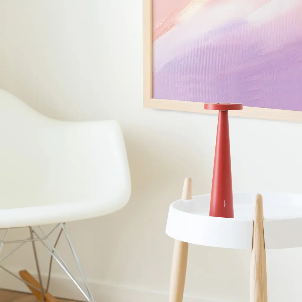 For intimate dinners or elevated office ambiance, the Angelina Pro Portable Table Lamp from Zafferano offers a cordless lighting option with a tilting, adjustable head for precise illumination. Designed for indoor use, it features a touch control for on/off, dimming, and color temperature selection. An integrated electronic system monitors battery life, ensuring efficient charging via its contact base (USB charger sold separately). This lamp combines advanced functionality with flexible design for expert-level performance. Highlights