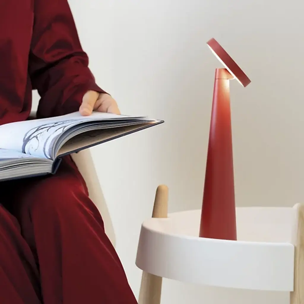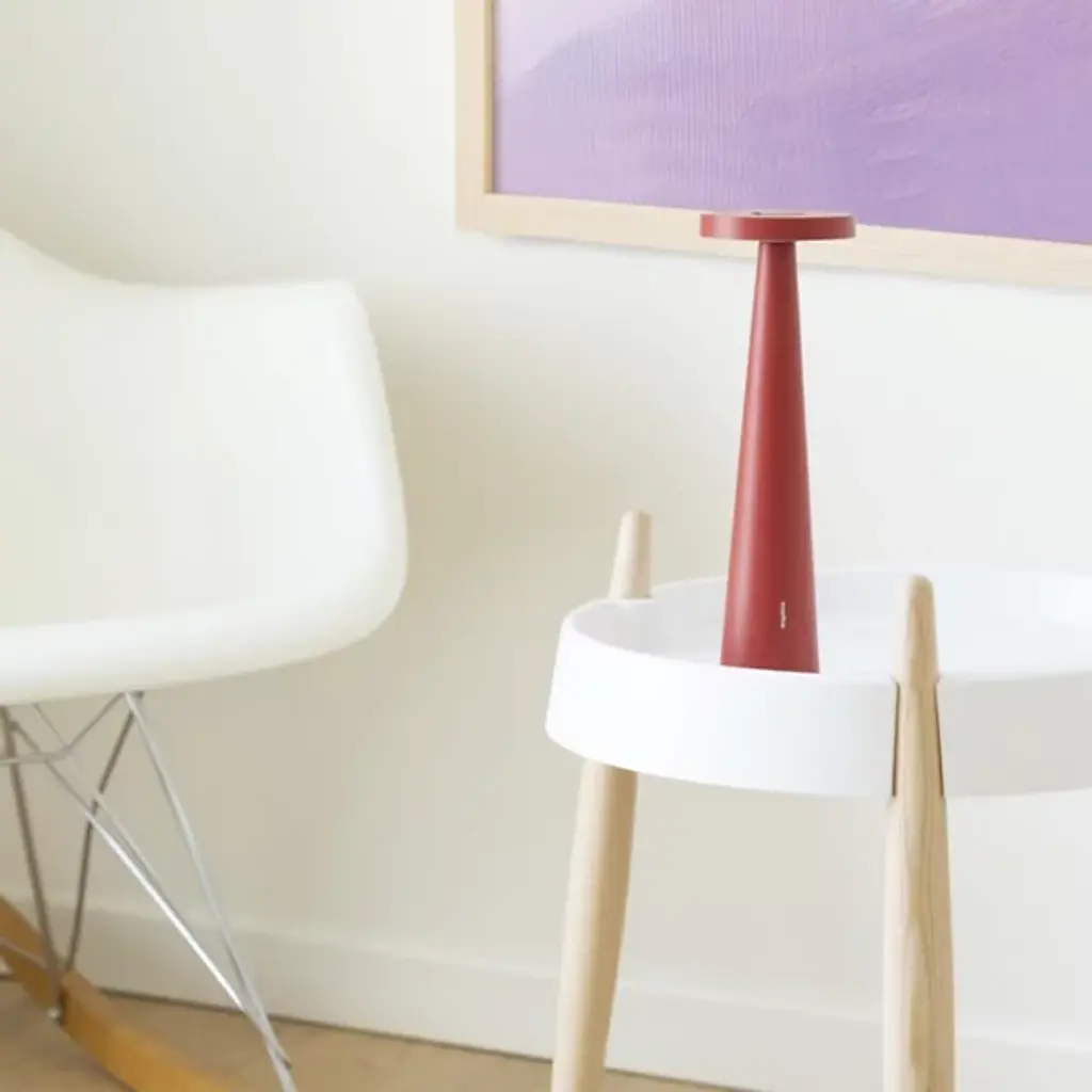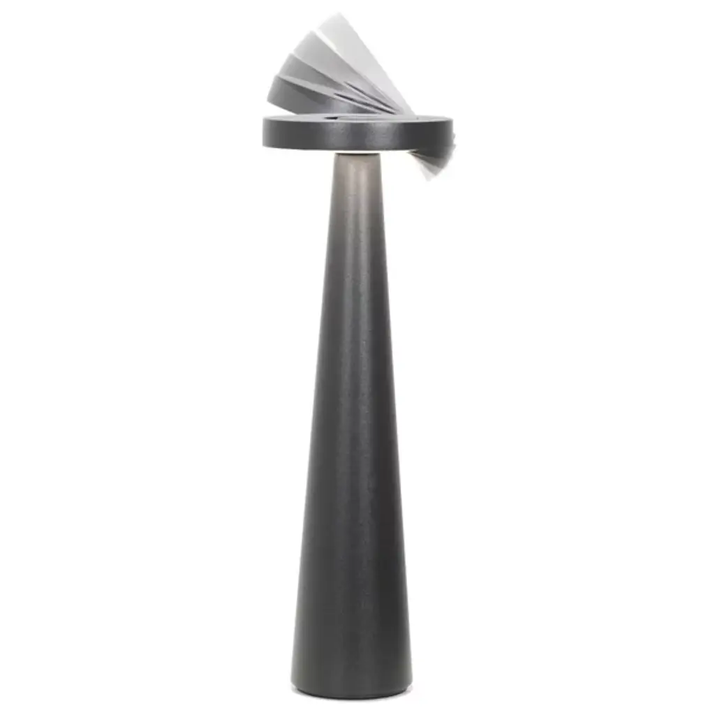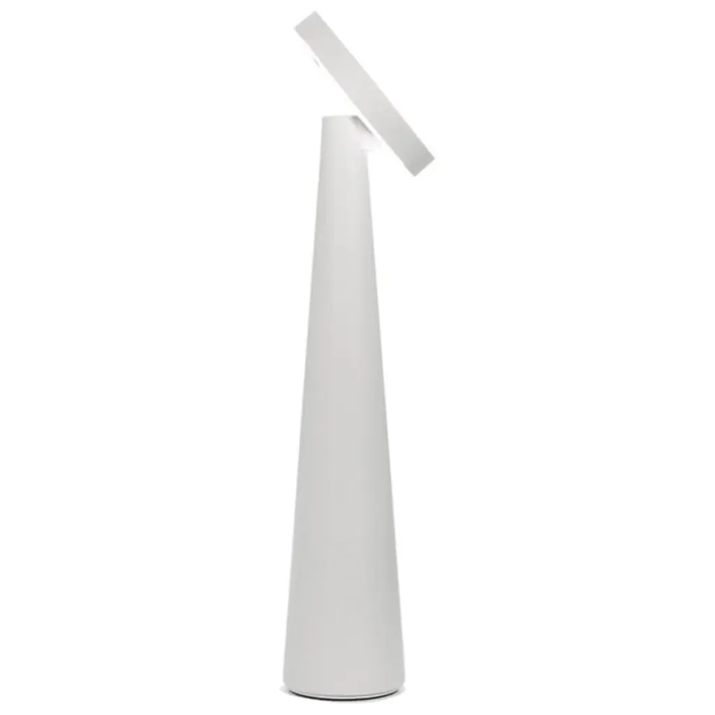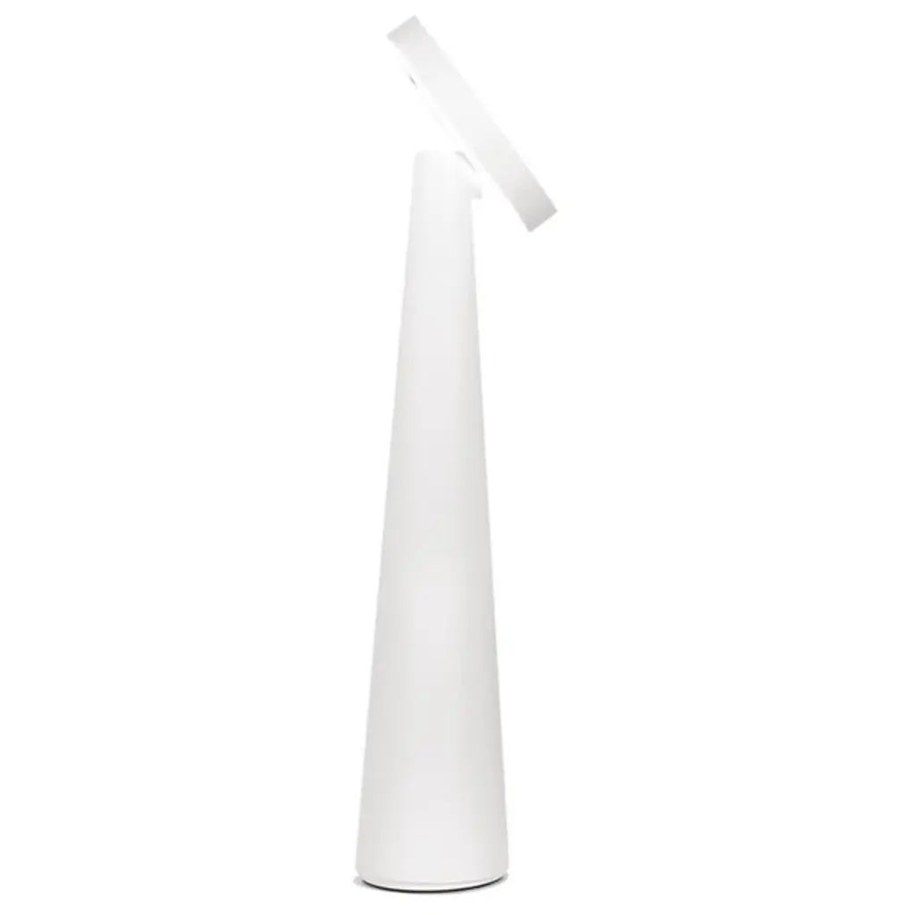 Sculptural and sensible, the Angelina Pro Rechargeable LED Table Lamp from Zafferano America adds flexible function to a conical, contemporary form. Its strong, die-cast aluminum construction relies on simple geometric forms, using a cone-shaped base to steady a puck-shaped LED lamping. The energy-efficient lamping rests behind an Opal Polycarbonate diffuser that can adjust its color temperature via a touch dimmer. The head can tilt up to 55 degrees, allowing the fixture to deliver focused task light if tilted towards the user or an ambient glow when angled away.