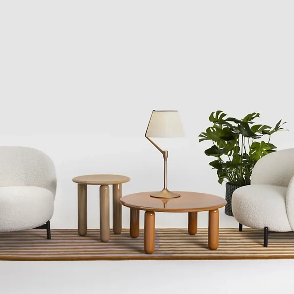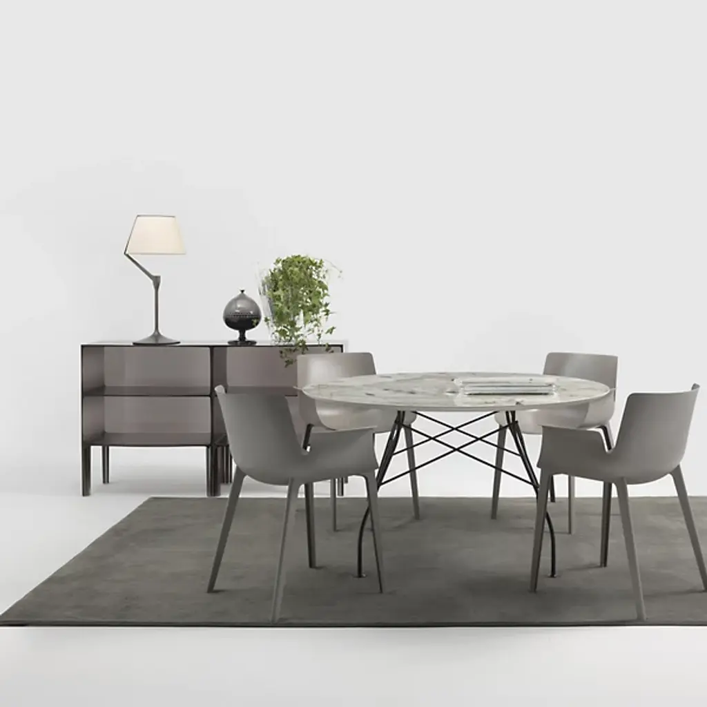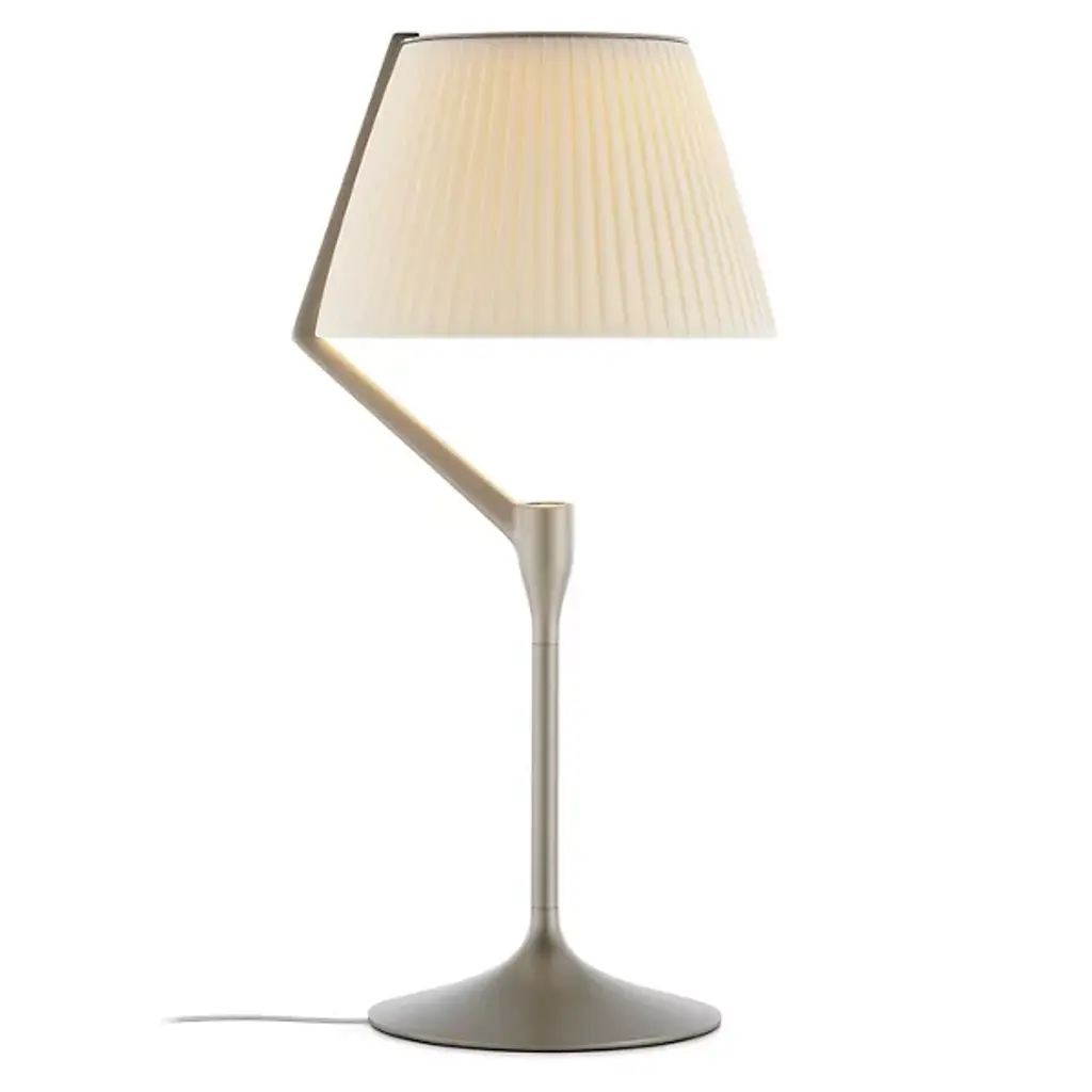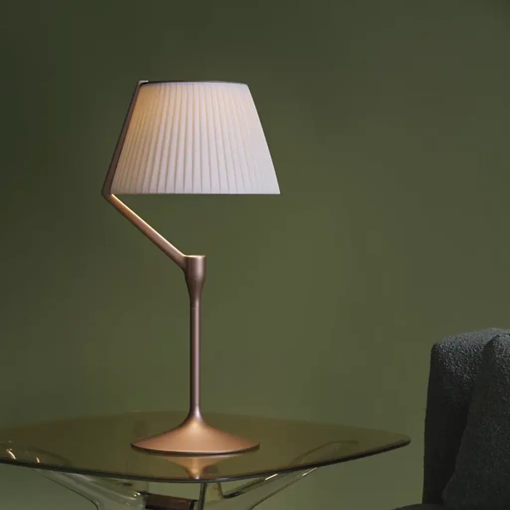 The Angelo Stone LED Table Lamp from Kartell, designed by Philippe Starck, reinvents traditional lighting with its innovative layout. An LED positioned on the stem directs light to the cap, producing a captivating play of reflections through high-tech lenses. Made from eco-friendly polycarbonate, the lampshade ensures an even, welcoming glow that fills the room. This thoughtfully crafted lamp merges elegance with sustainability, making it an ideal choice for adding modern sophistication and a warm ambiance to any space.