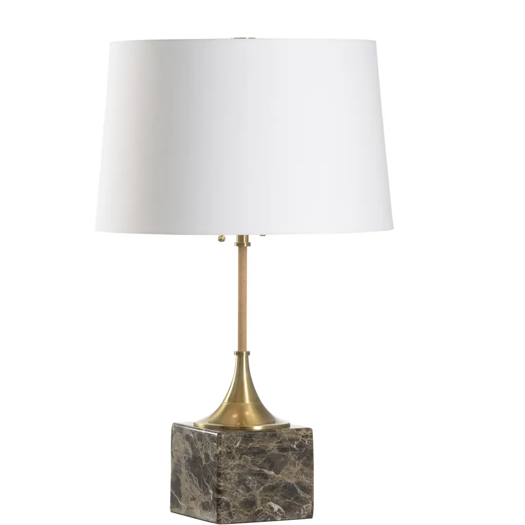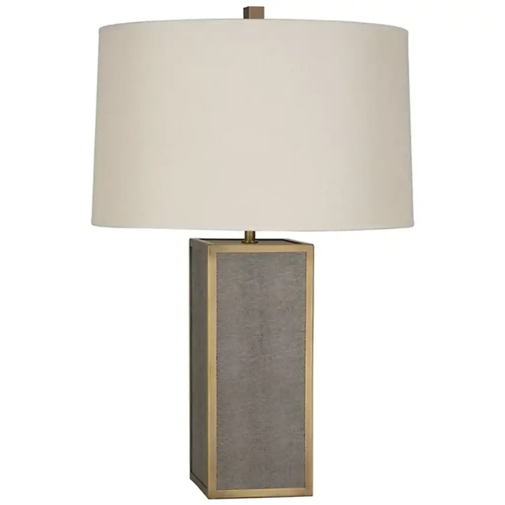 The Robert Abbey Anna Rectangular Table Lamp puts an interesting twist on the standard table lamp with a wildlife characteristic. The rectangular shaped base is wrapped in a faux snakeskin, the subtle texture adding personality and an original spin to any decor. The base is outlined in a metallic finish, providing an intriguing contrast against the faux wrap. Simple yet absorbing, this uncomplicated piece will add just a touch of excitement to your living space.
