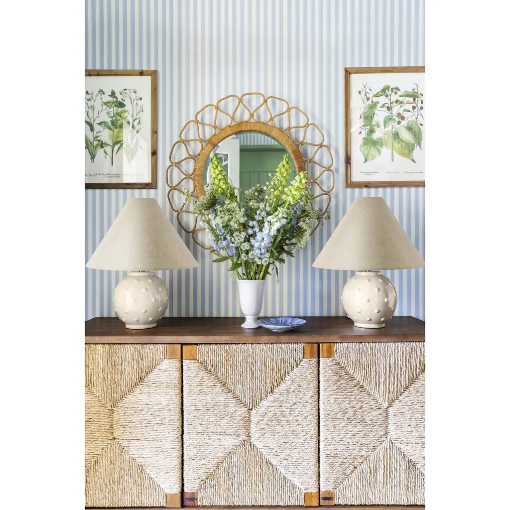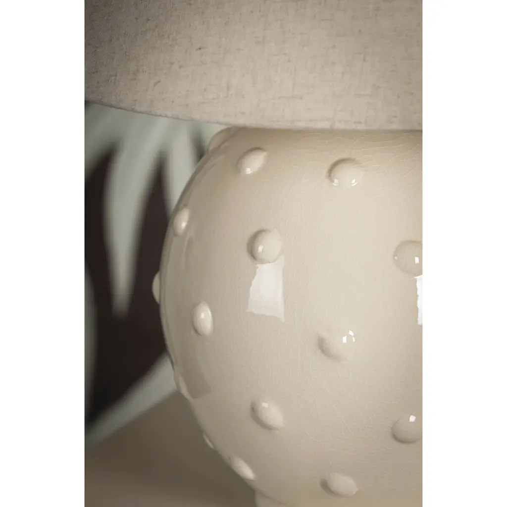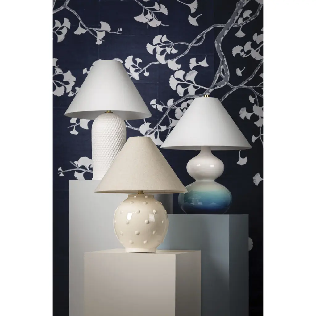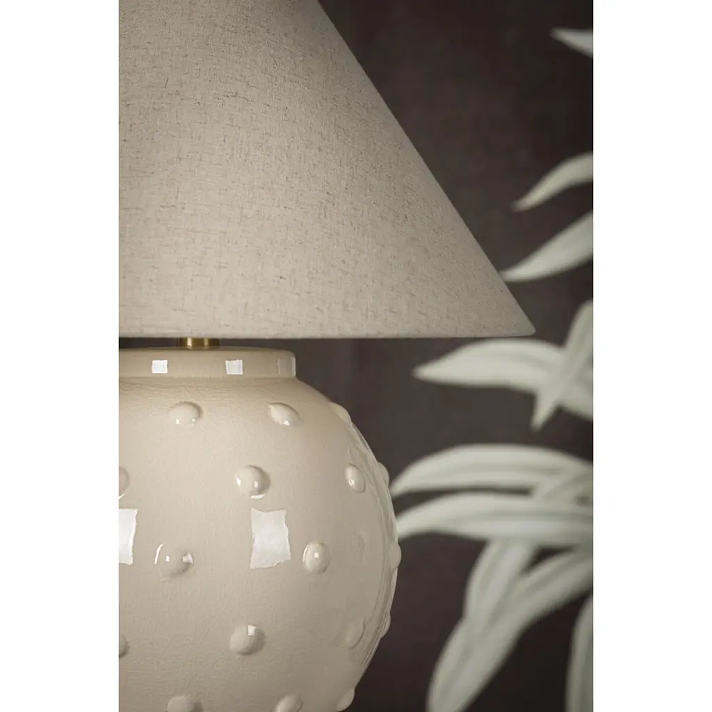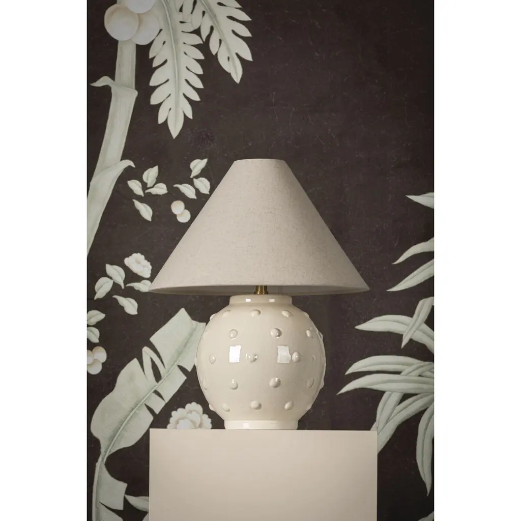Playing with texture, tone and shape, Annabelle features a tapered natural linen shade over a rounded ivory ceramic base. The raised polka dots and subtle crackle in the finish feel fun and chic. This cute table lamp is both special and useable—make it the focal point of a space or easily blend with existing interiors. Part of our Ariel Okin x Mitzi Tastemakers collection.