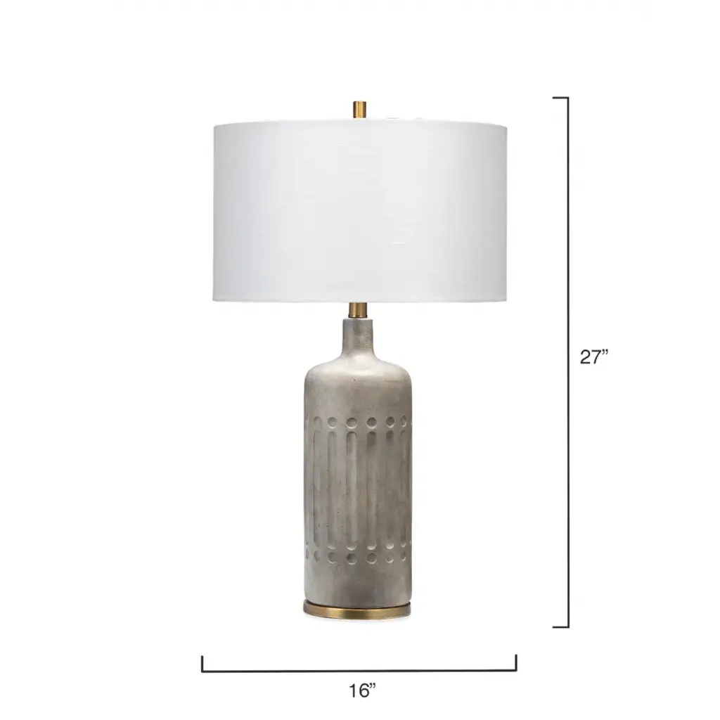 Enhance your casually modern space with the Annex Table Lamp. Hand-crafted by artisans, its textured cement body with clean lines, accented by antiqued brass, adds a classic touch. The white linen drum shade complements transitional to contemporary environments, making this lamp a striking addition to any room in your home or office.