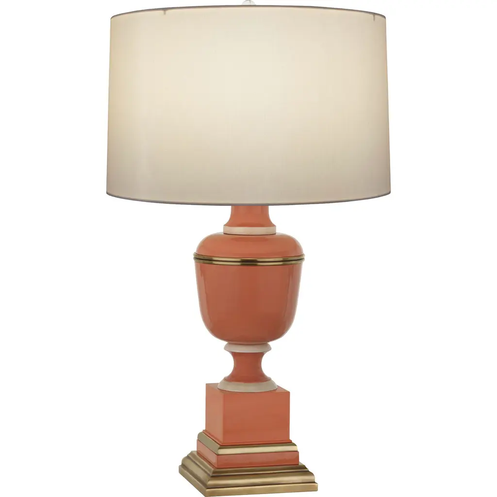 Gorgeous, luxurious and filled with eye popping, dazzling colors. The Annika Table Lamp by Robert Abbey will make a stylish addition to your table, setting itself apart with more visual panache than the average table lamp. The Metal base features accents in Natural Brass and Ivory Crackle, adding elements of regal beauty to the already extravagantly curved design. The base and shade colors can be mixed and matched in a variety of combinations for the customer’s choosing pleasure.