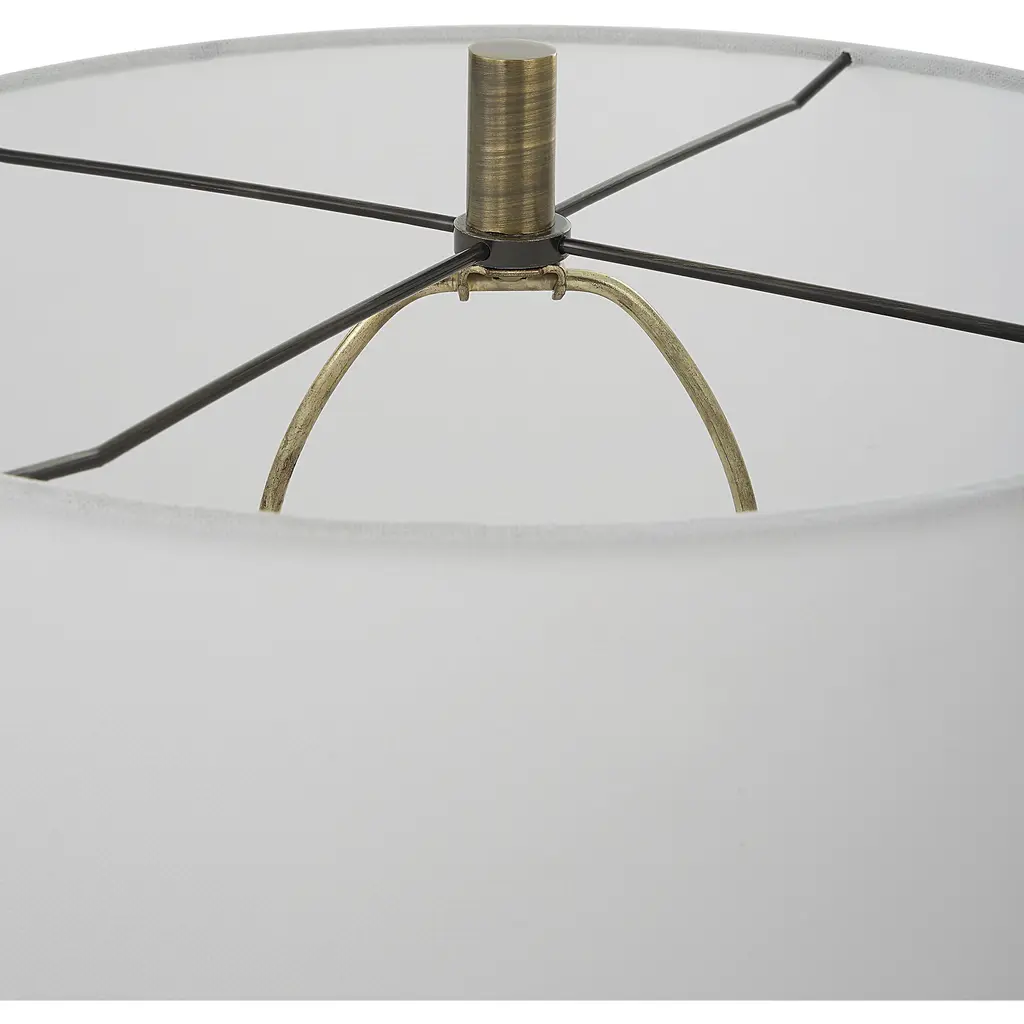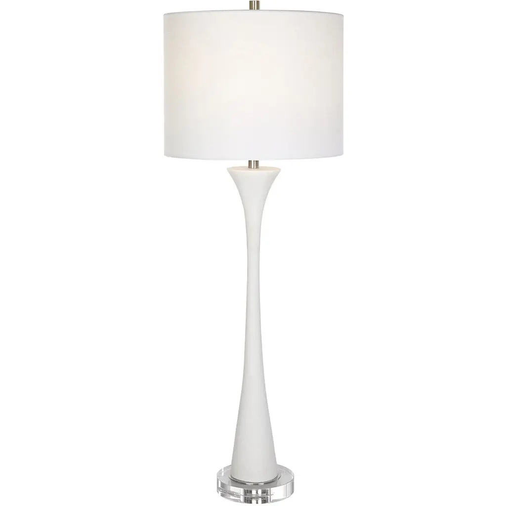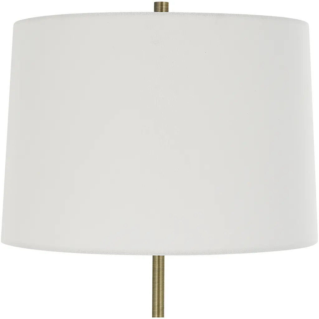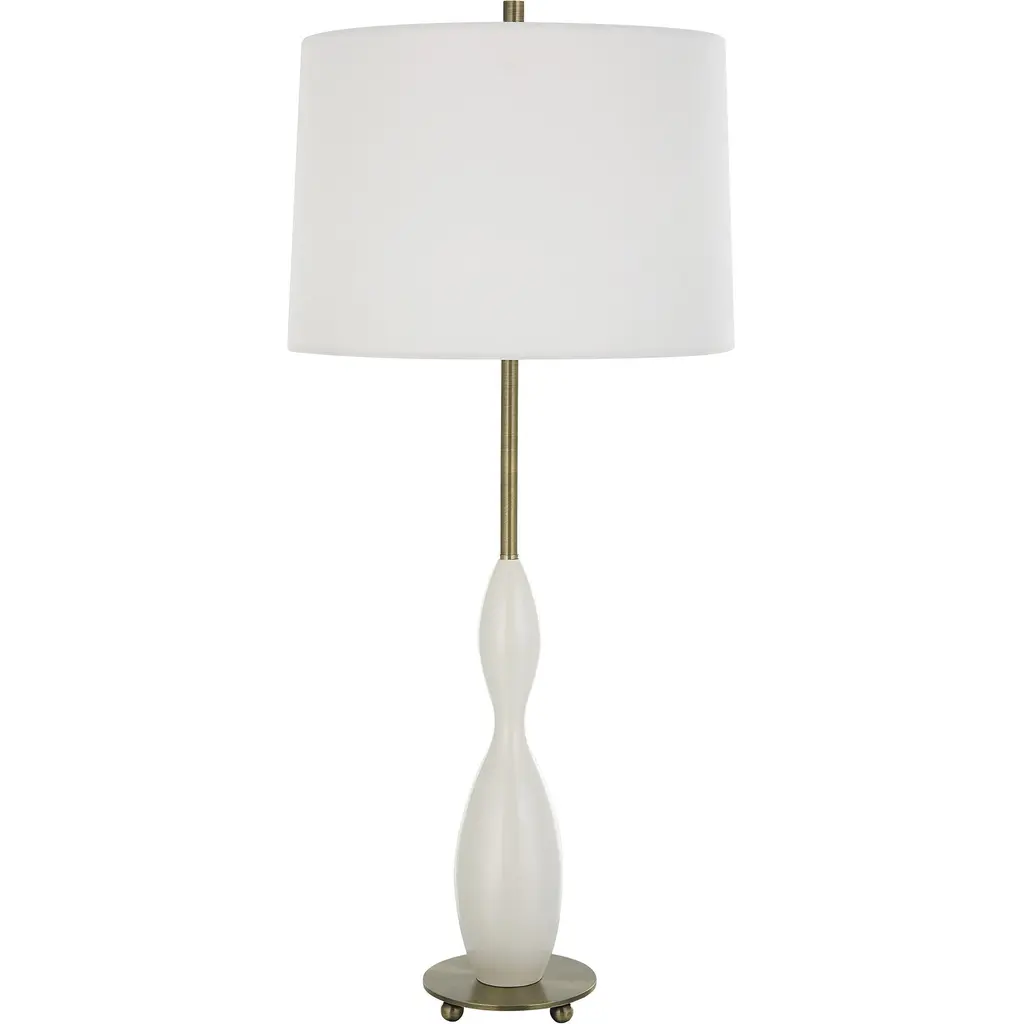 The Soft Silhouette For This Lamp Makes It Versatile In Most Settings By Showcasing A Casted Curvy Base Finished In A Glossy White Paired With Antique Brass Plated Details. The Slightly Tapered Round Shade Is Made From A Crisp White Linen Fabric.