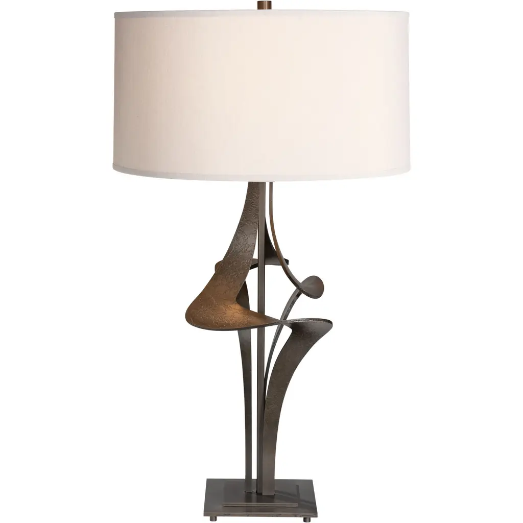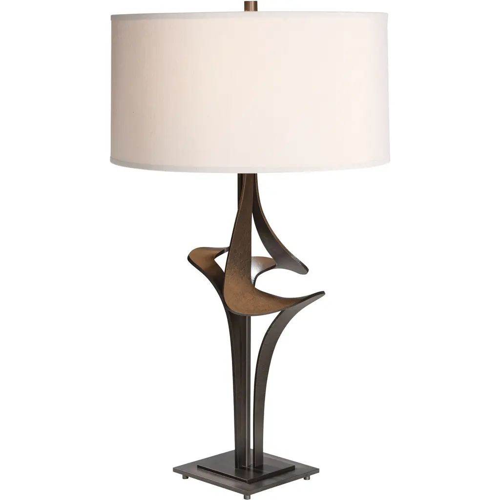 Our Vermont artisans have created a visual illusion. Does the hand-forged steel of the Antasia Table Lamp look like liquid flowing down from the shade, or does it look like smoke rising up into it? Opinions may vary but there is a consensus about the artistry on display.