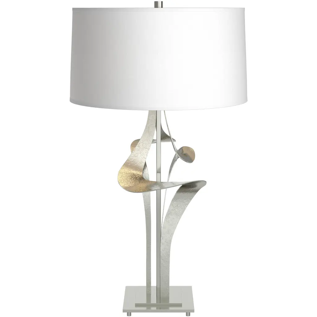 Our Vermont artisans have created a visual illusion. Does the hand-forged steel of the Antasia Table Lamp look like liquid flowing down from the shade, or does it look like smoke rising up into it? Opinions may vary but there is a consensus about the artistry on display.Includes 1 x 100 watt A-19 E26 medium LED bulb(s)(Included).All Hubbardton Forge products are hand-crafted to last one at a time in Vermont and backed by a Lifetime Limited Warranty.
