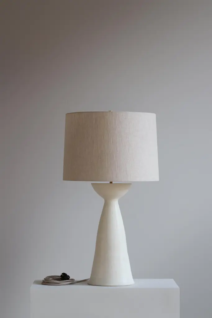 Anthracite Seneca 30 Table Lamp by Danny Kaplan StudioDimensions: ⌀ 41 x H 76 cmMaterials: Glazed Ceramic, Unfinished Brass, LinenThis item is handmade, and may exhibit variability within the same piece. We do our best to maintain a consistent product, but honor the handmade craftsmanship. Dimensions may vary within an inch.UL Certification available upon request.All our lamps can be wired according to each country. If sold to the USA it will be wired for the USA for instance.Danny Kaplan Studio is a ceramic studio based in Brooklyn focused on lighting and sculptural furniture. Everything is handmade to order.