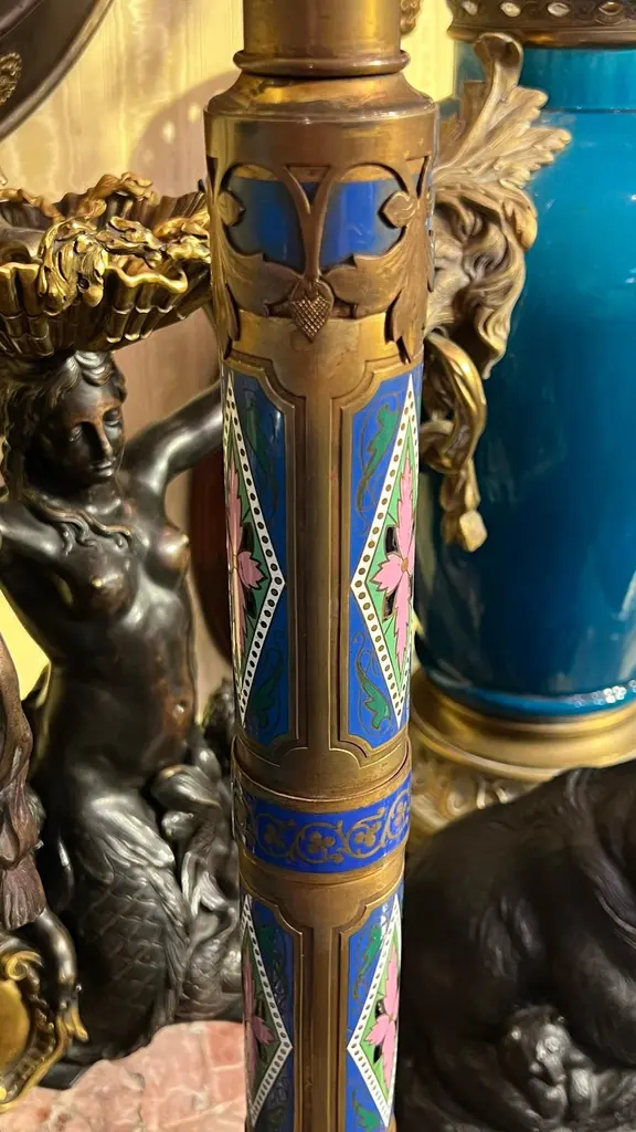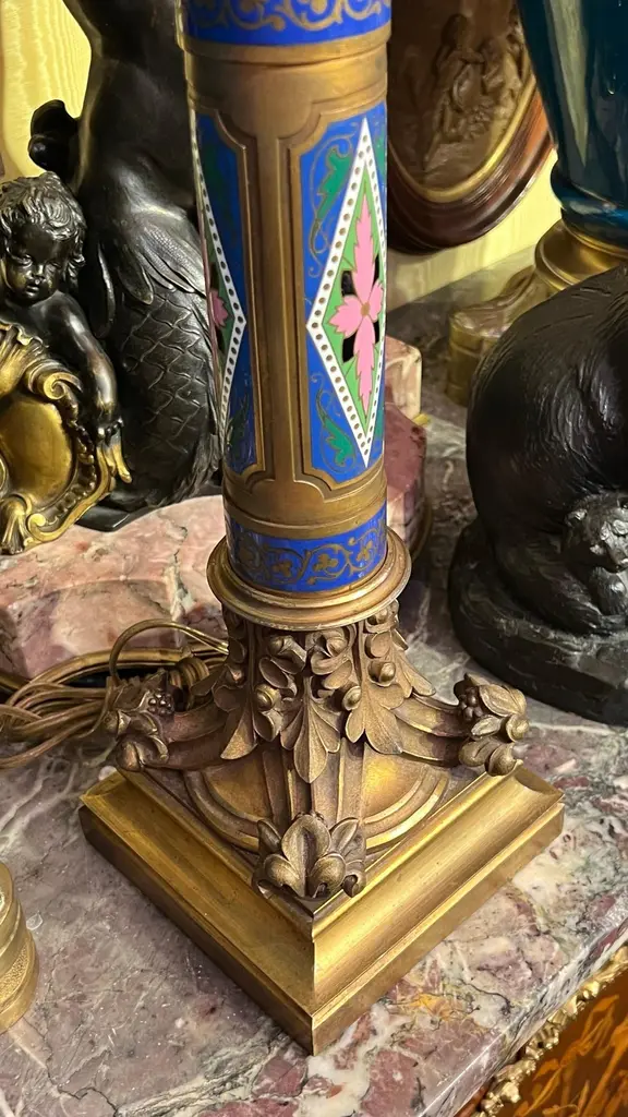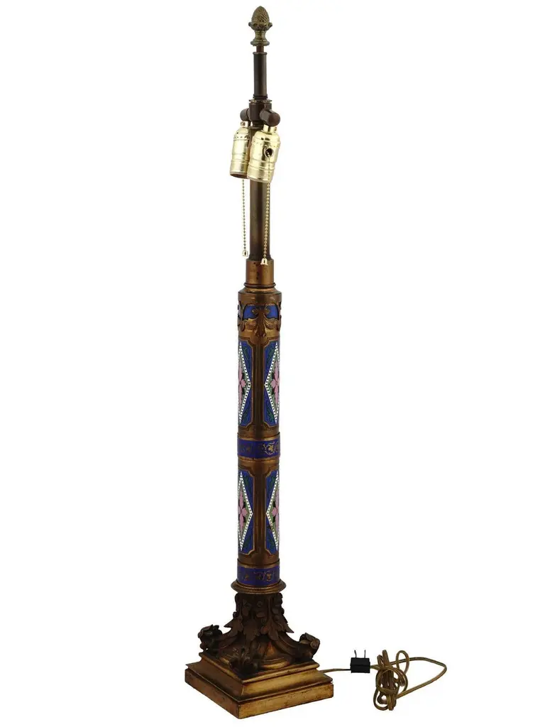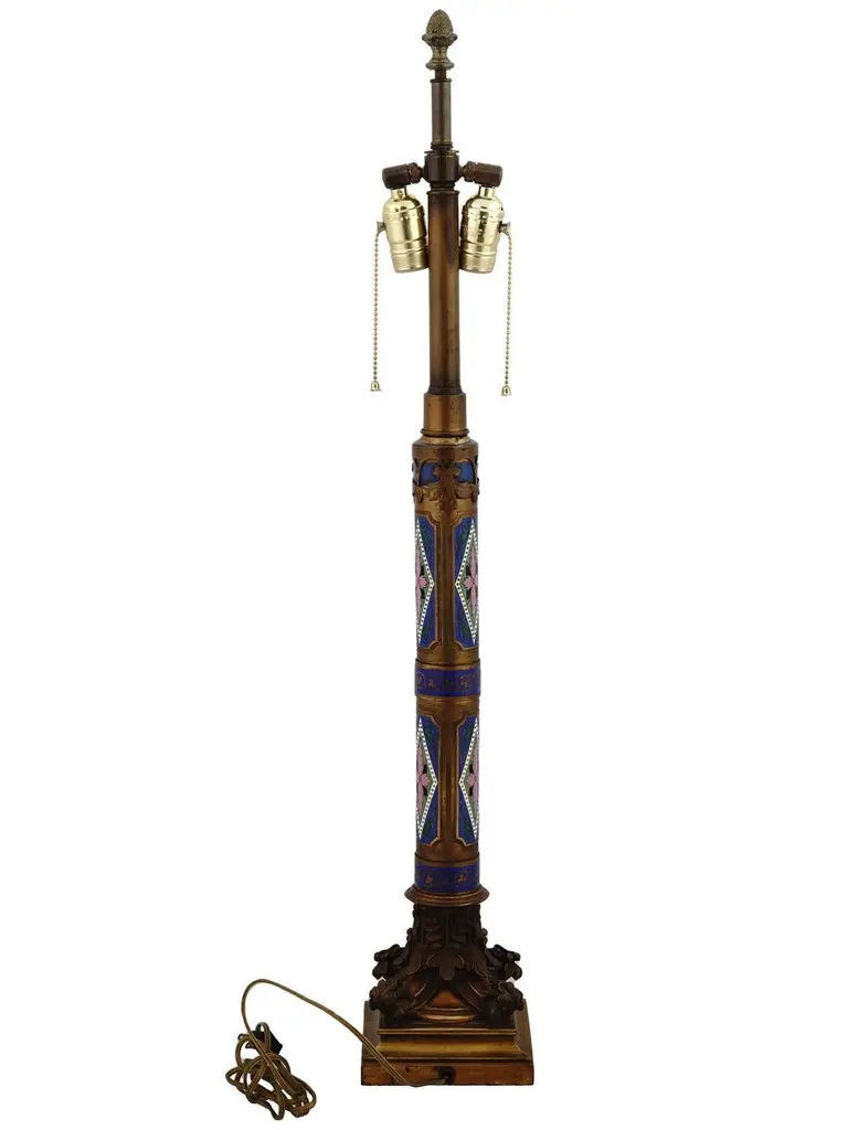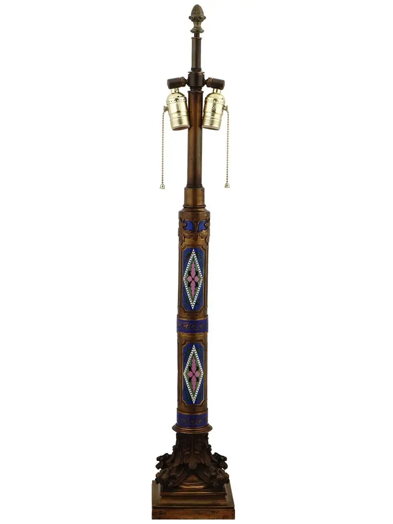 Antique Champleve Enameled Bronze Table Lamp Attributed To Caldwell