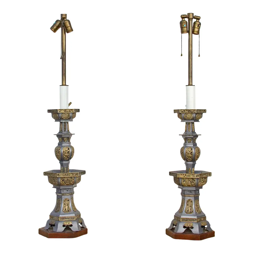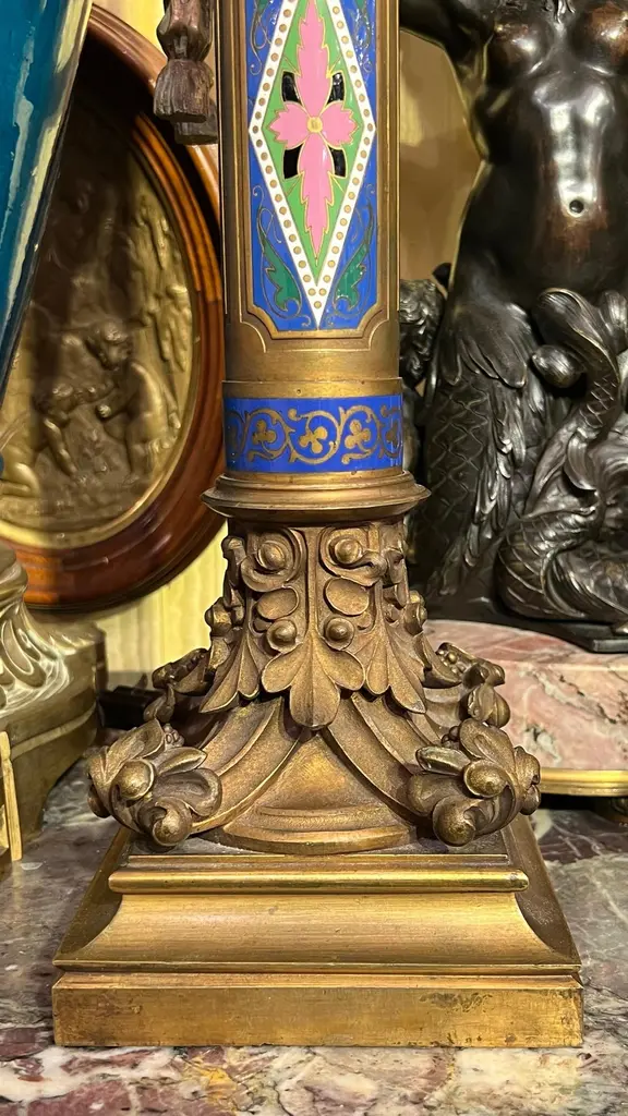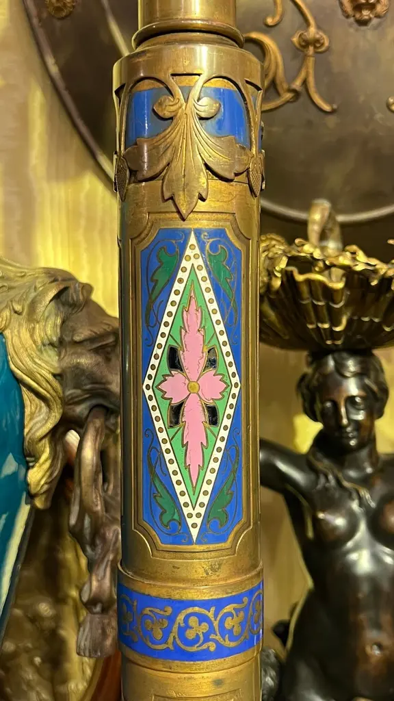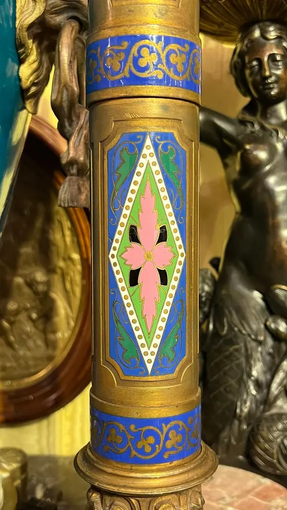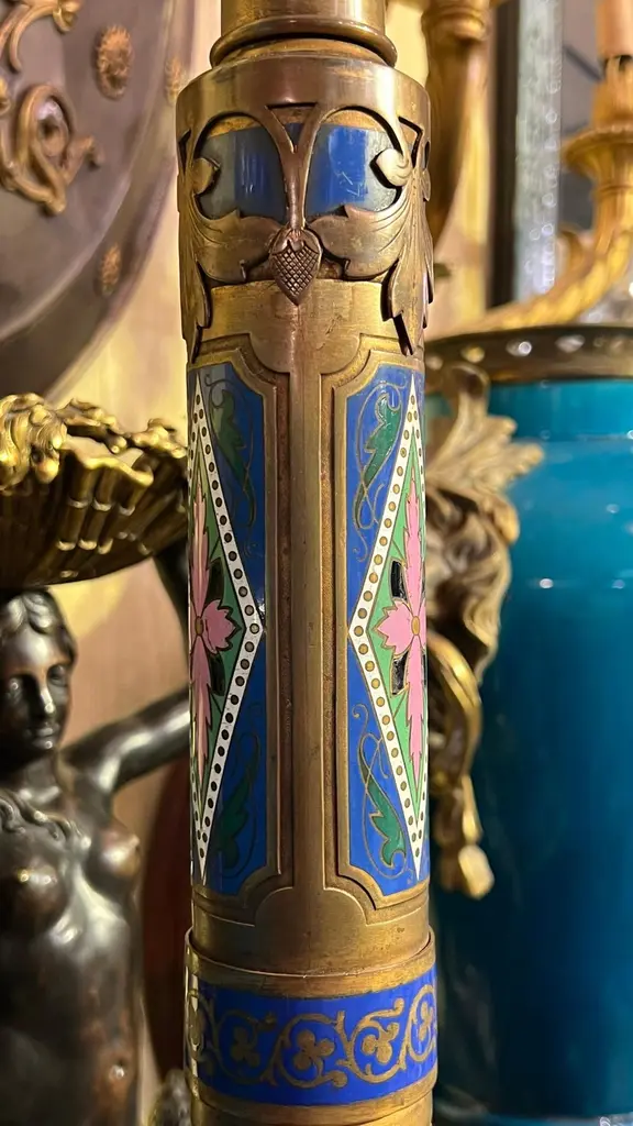 Antique Champleve Enameled Bronze Table Lamp Attributed To Caldwell