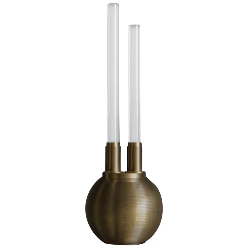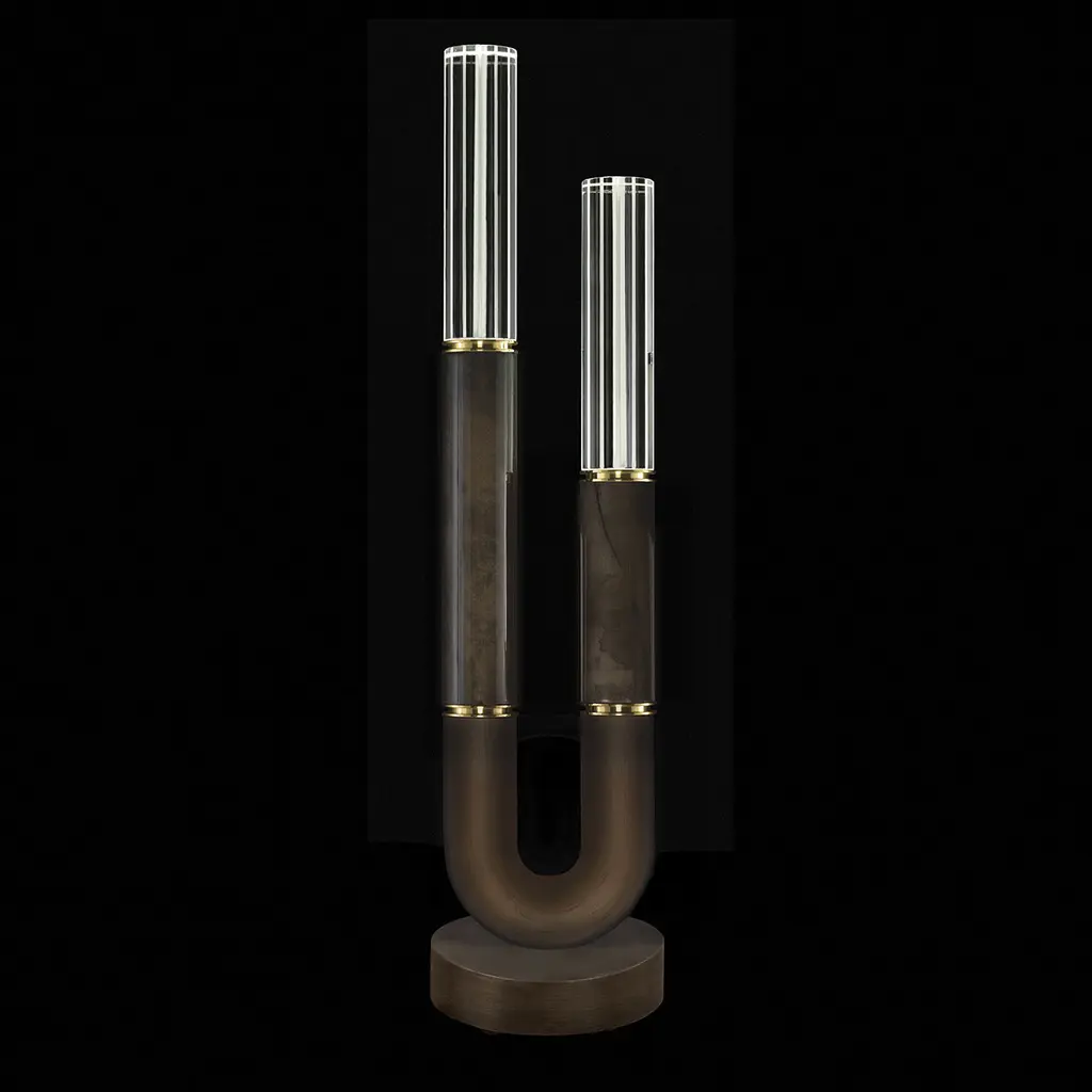 Table lamp featuring soft curves and the inclusion of metals carefully handcrafted to transition from parchment to magnificent glass, culminating in a stunning beam of light. Available in a wide range of exquisite finishes, including our five standard finishes and our newest Soft Ombre Bronze & Soft Ombre Silver, with the choice of two parchment colors, Charcoal and Smoke. Also available with no parchment.
