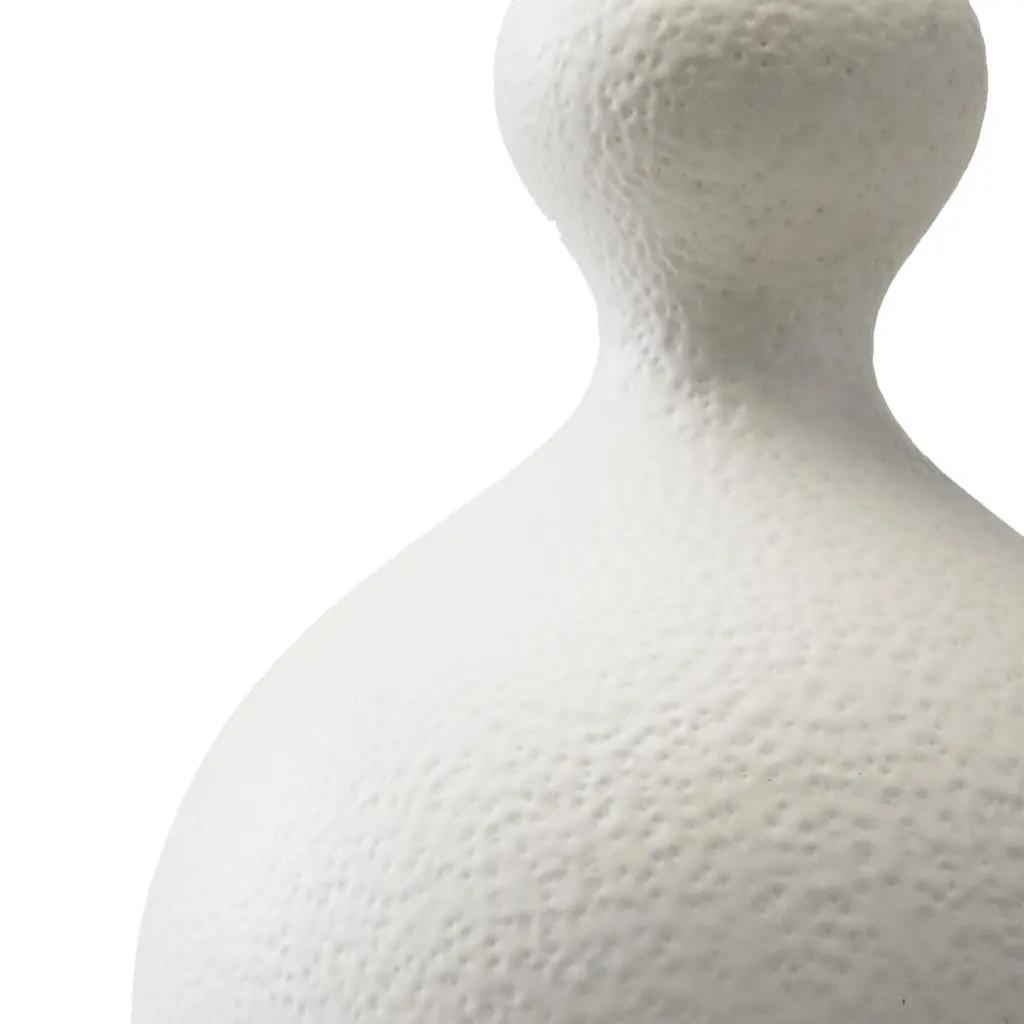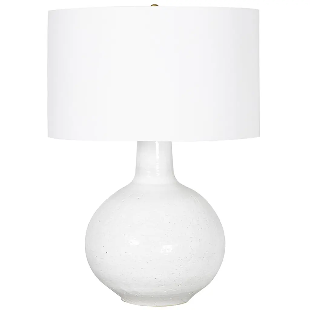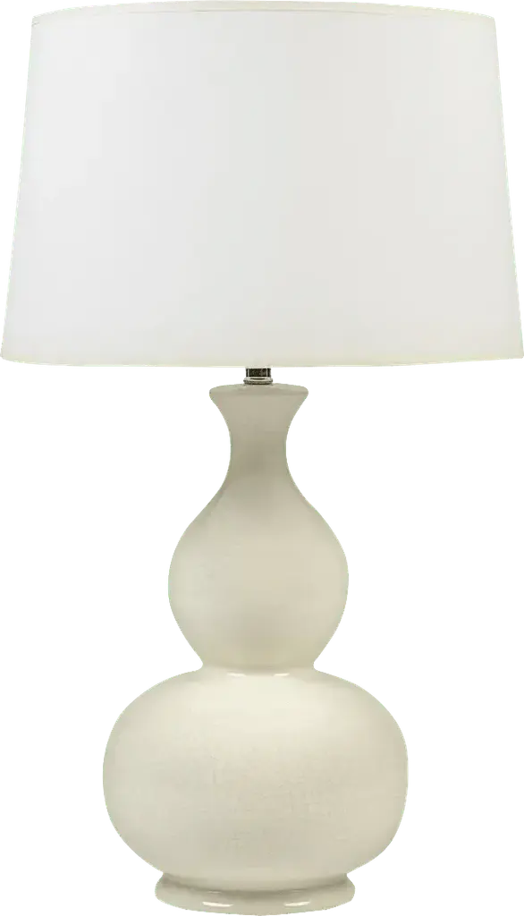 This contemporary update of the classic gourd lamp has a glossy finish that accentuates its voluptuous curves. The white linen shade serves as a tailored complement.