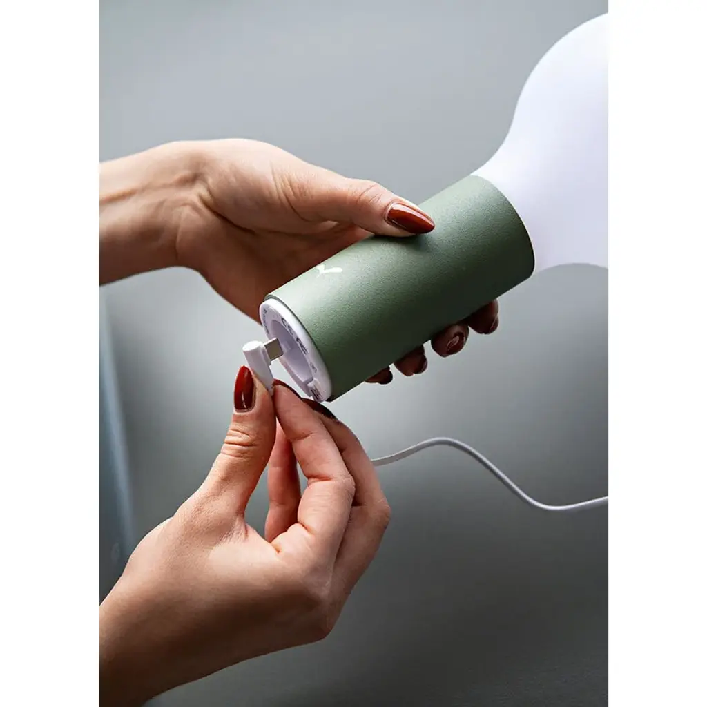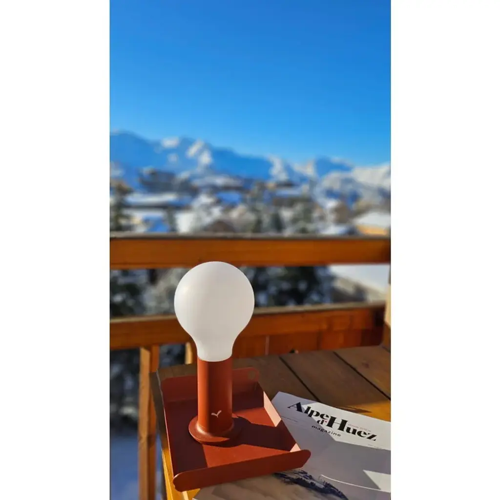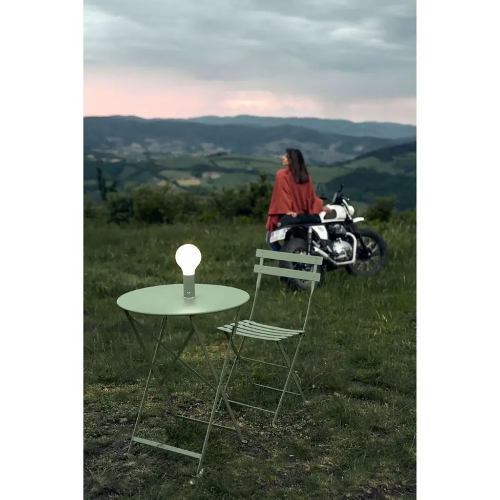 Fermob's Aplô is a true all-rounder in lighting, with a playful design that delights both indoors and outdoors. The luminaire, designed by Tristan Lohner, is cordless and USB-rechargeable, so it's easy to move it where you need it, from the living room to the balcony or from the terrace to the guest house. The shape of the Aplô lamp is borrowed from a regular light bulb, which is not only an essential element in lighting, but also symbolizes ideas, ingenuity and inventions – what a suitable shape for such an innovative lamp! Made of recyclable materials, Aplô is dimmable and has two different brightness settings and two color temperatures: bright white (6000K) that resembles daylight or a softer, warmer white (3000K). With the brighter light, Aplô is like a flashlight that illuminates its surroundings efficiently, while with the dimmer setting, it creates a pleasantly mellow atmosphere for summer evenings on the patio.