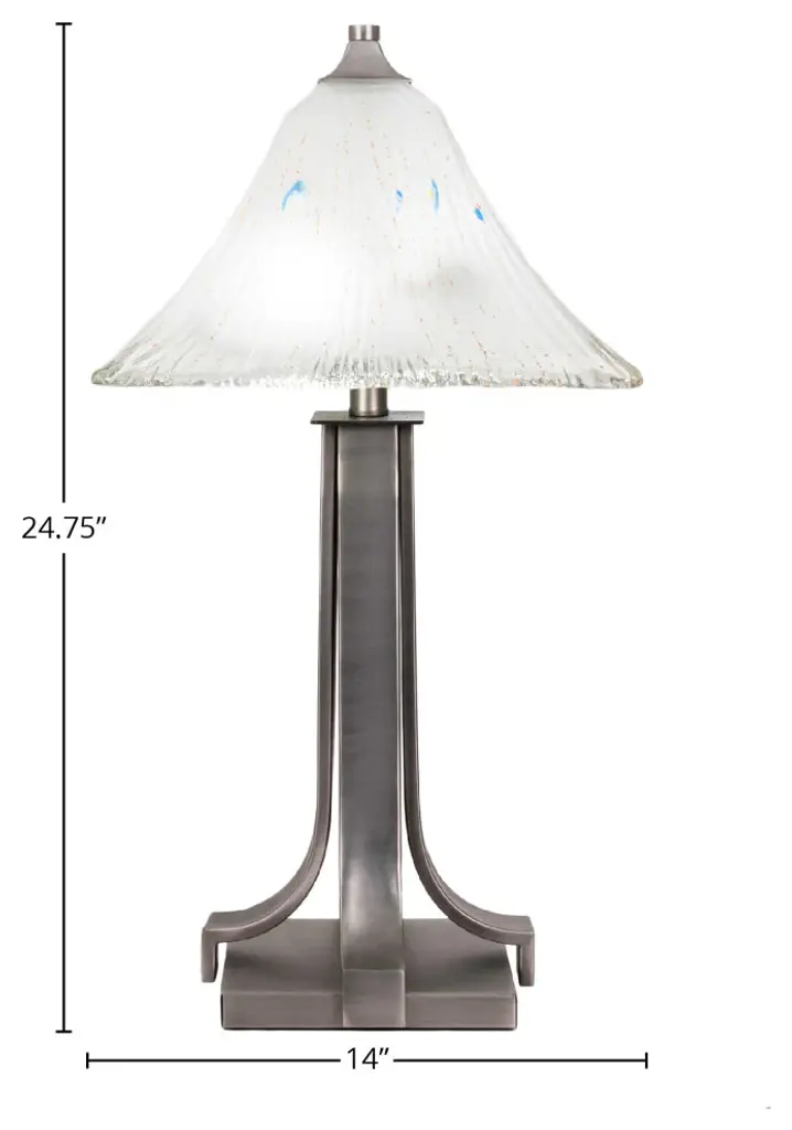 Revamp your space with the Apollo 2-Light Table Lamp. Installation is a breeze - simply connect it to a 120 volt power supply and enjoy. This product is designed to be energy-efficient and LED compatible, ensuring convenience and cost savings. Versatile and suitable for everyday use, this table lamp is compatible with standard medium base bulbs. Maintenance is easy. Simply use a damp cloth and do not use chemical cleaners. With its streamlined plug-in design, this lamp adds a touch of sophistication to any room. The durable glass shade guarantees even light diffusion when in use. Choose from multiple finish and color variations to match your style.Features:• Easy to install and use with 120 volt power supply• Energy-efficient and LED compatible for long-lasting illumination• Versatile lighting options with compatibility for standard medium base bulbs• Easily maintain cleanliness with a damp cloth, do not use chemical cleaners• Seamless integration with plug-in designDimensions:Table Lamp• Shade Width: 14 inches• Wire Length: 84 inchesRequirements:• Bulb Base: E26• Bulb Type: LED Bulb, IncandescentFor over 40 years, Toltec Lighting has been dedicated to creating extraordinary lighting experiences for our customers. Our extensive online catalogue showcases a diverse range of contemporary and timeless collections, offering over 40 glass shade choices to personalize each fixture to your unique taste. Whether you seek traditional, transitional, or contemporary styles, our fixtures effortlessly complement any decor. With an unwavering commitment to quality, value, and exceptional service, we prioritize your satisfaction by ensuring hassle-free transactions. Toltec Lighting stands proudly as a beacon of reliability and brilliance, and we look forward to illuminating your home for years to come.