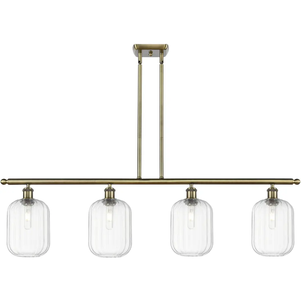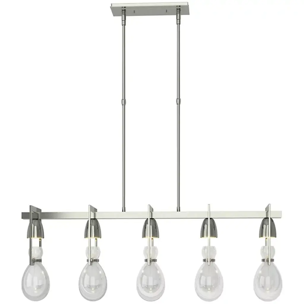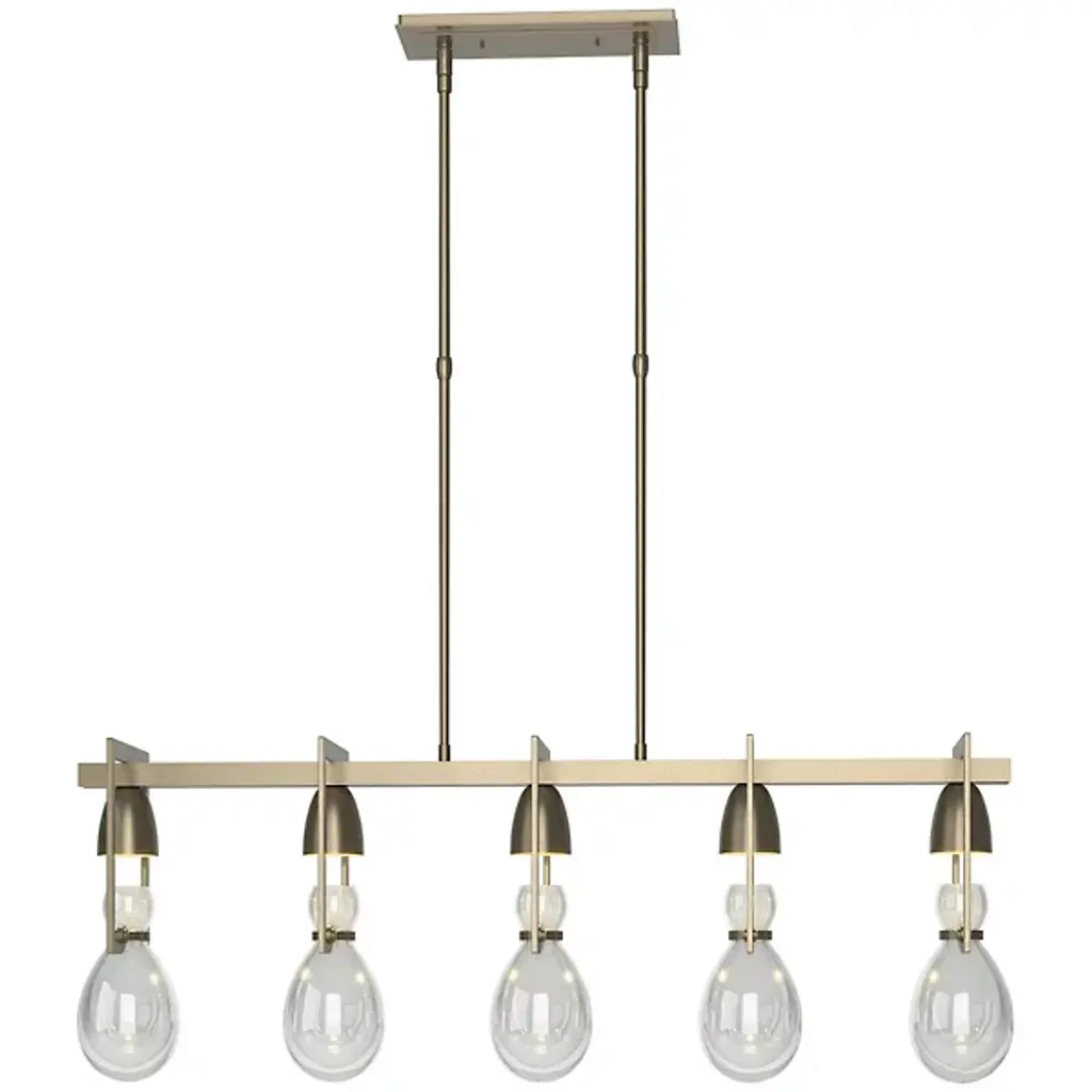 The Apothecary Linear Suspension by Hubbardton Forge is inspired by old fashioned Apothecary's and their many bottles and vessels that seem to have a certain romantic quality. A series of hand blown hourglass forms sit cradled in rectangular frames, each lit with a hidden Halogen lamp that shines from above. This creates an intriguing trickle down lighting effect that gives a unique highlight to the translucent glass and shows off its artisan created qualities. Ideal for use over a dining room table, kitchen island or office to add lighting as well as a modern take on a small piece of the past. Made to order in the USA.