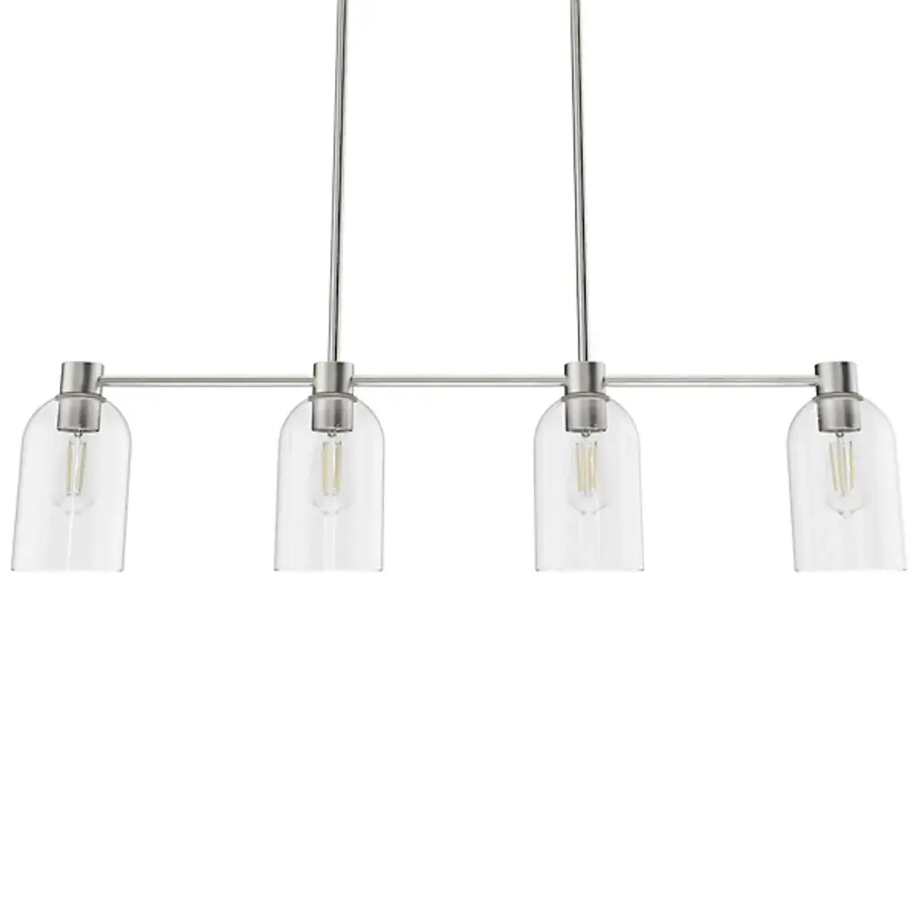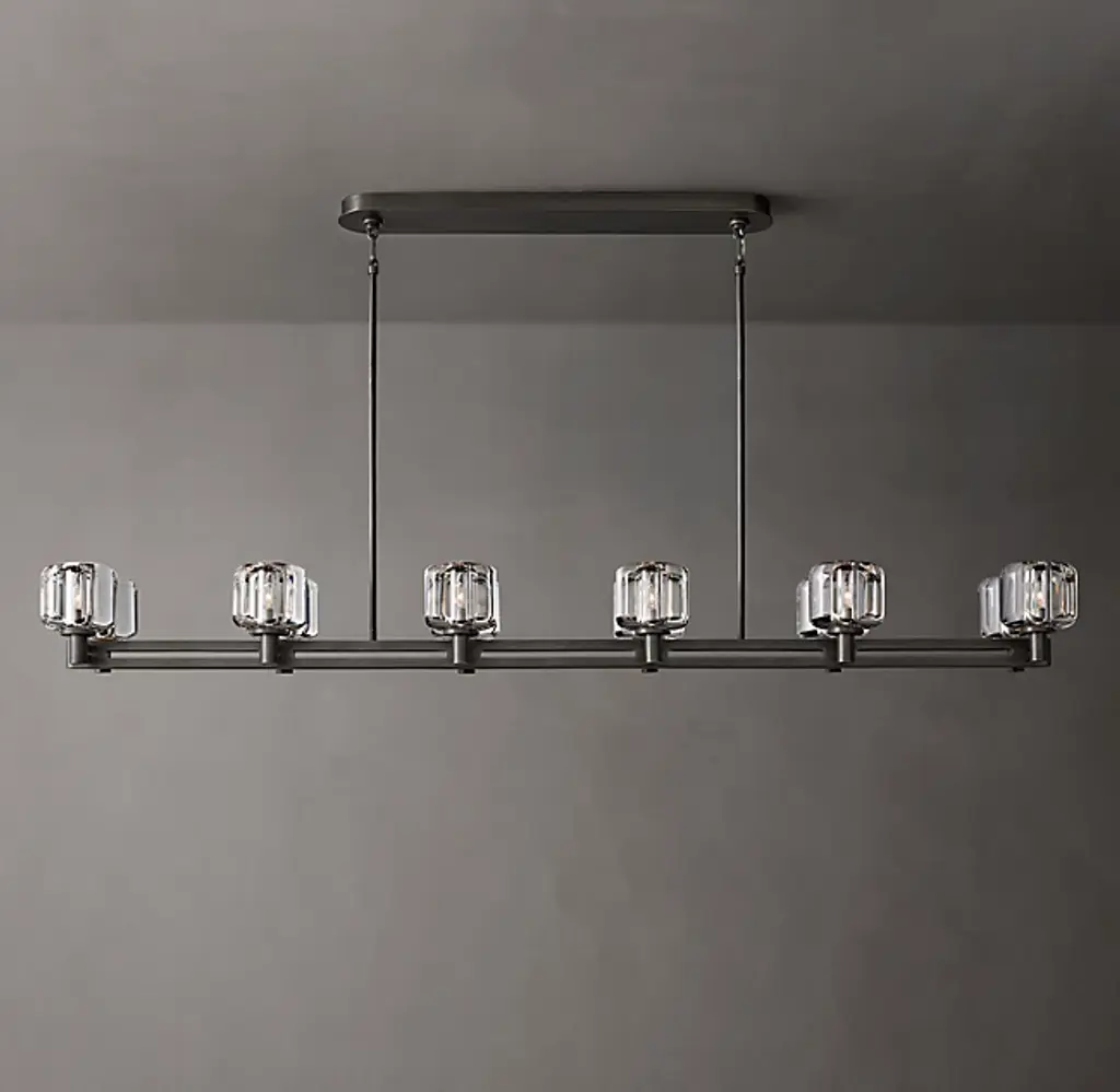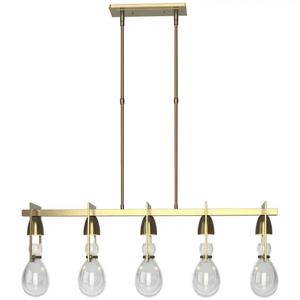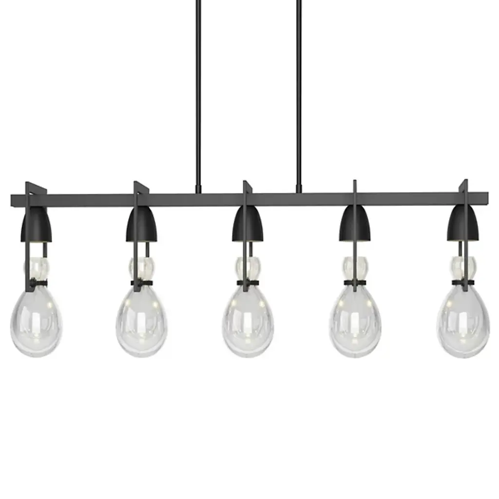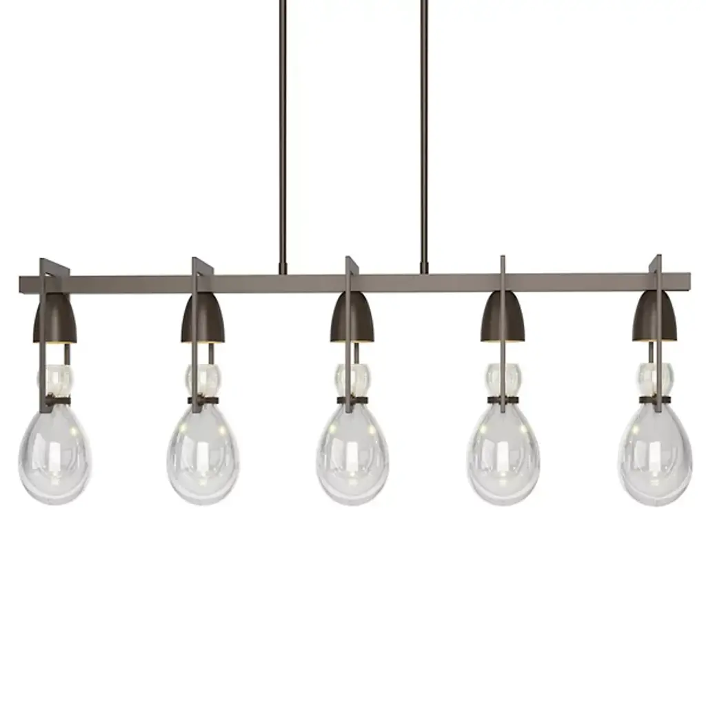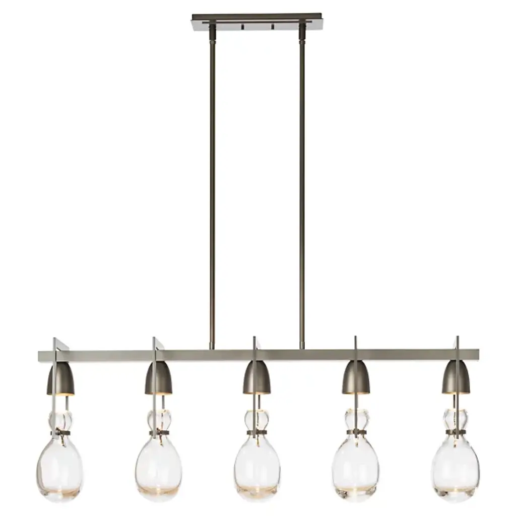 The Apothecary Linear Suspension by Hubbardton Forge is inspired by old fashioned Apothecary's and their many bottles and vessels that seem to have a certain romantic quality. A series of hand blown hourglass forms sit cradled in rectangular frames, each lit with a hidden Halogen lamp that shines from above. This creates an intriguing trickle down lighting effect that gives a unique highlight to the translucent glass and shows off its artisan created qualities. Ideal for use over a dining room table, kitchen island or office to add lighting as well as a modern take on a small piece of the past. Made to order in the USA.