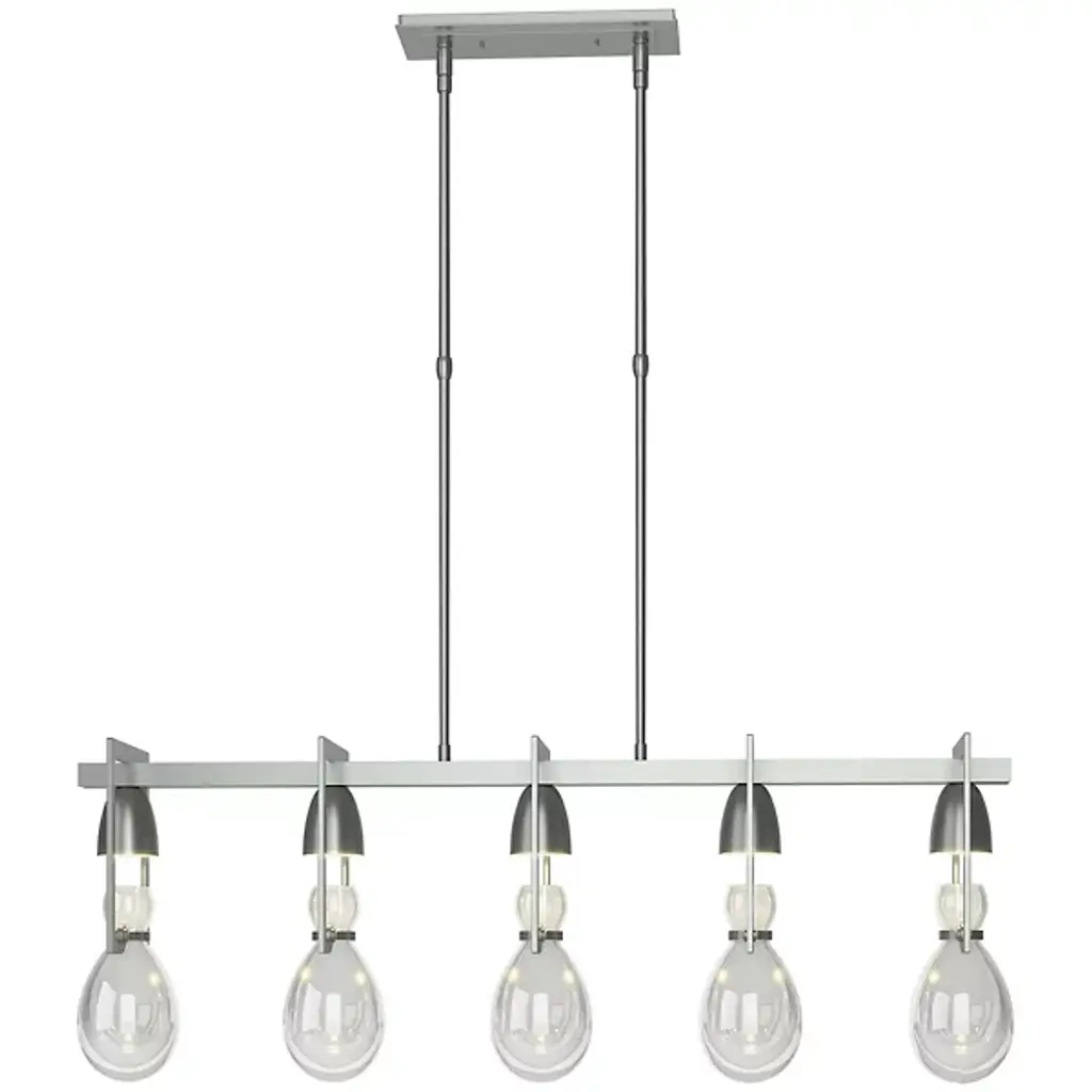 The Apothecary Linear Suspension by Hubbardton Forge is inspired by old fashioned Apothecary's and their many bottles and vessels that seem to have a certain romantic quality. A series of hand blown hourglass forms sit cradled in rectangular frames, each lit with a hidden Halogen lamp that shines from above. This creates an intriguing trickle down lighting effect that gives a unique highlight to the translucent glass and shows off its artisan created qualities. Ideal for use over a dining room table, kitchen island or office to add lighting as well as a modern take on a small piece of the past. Made to order in the USA.