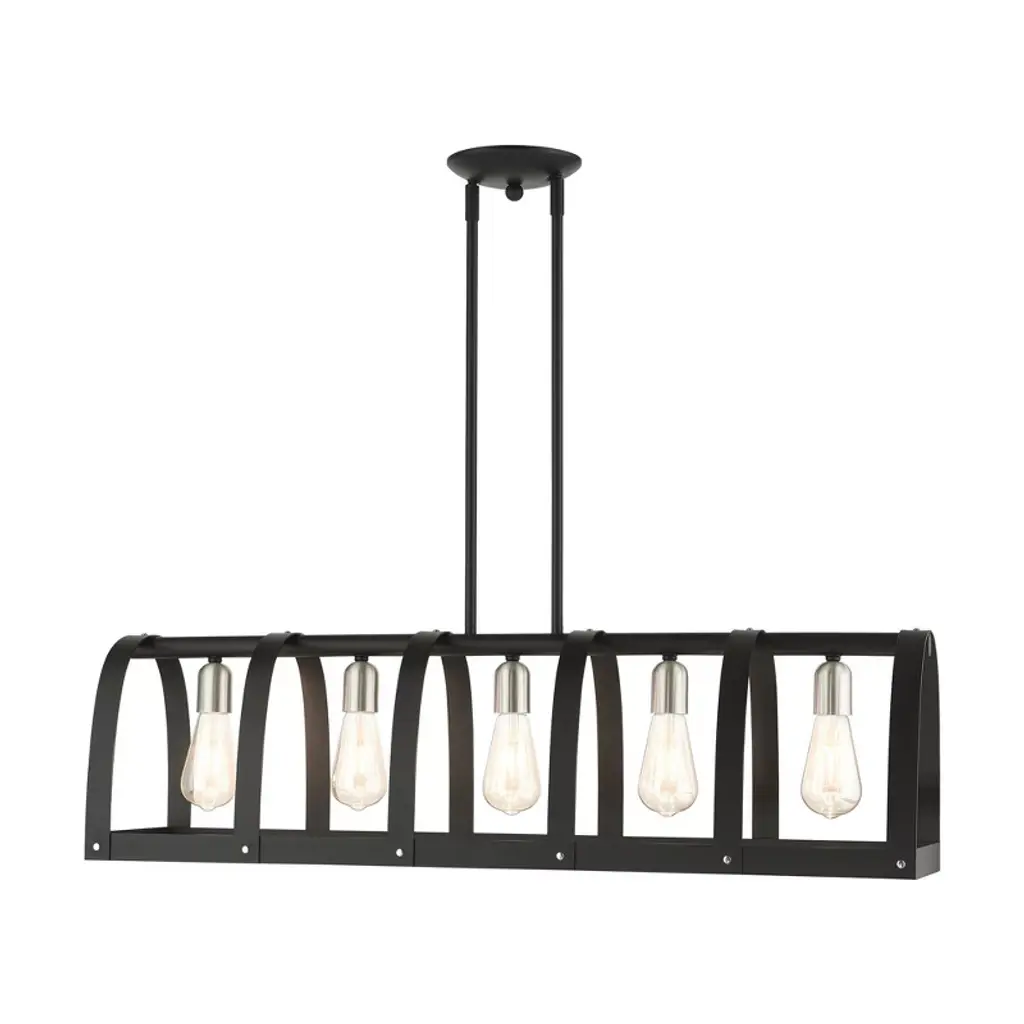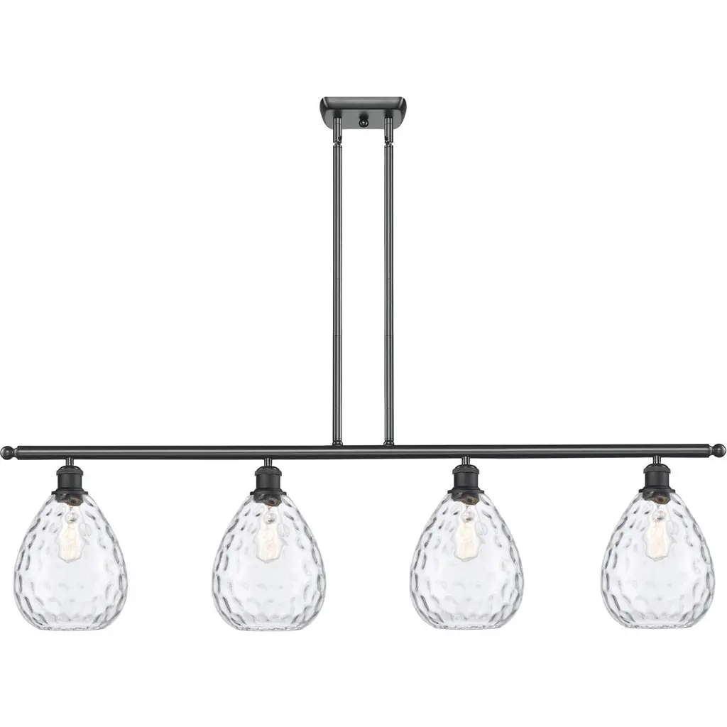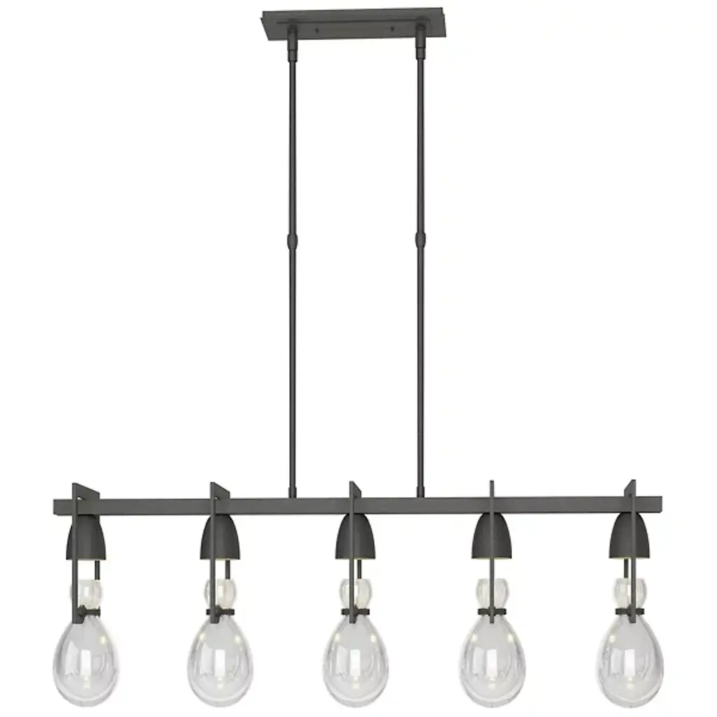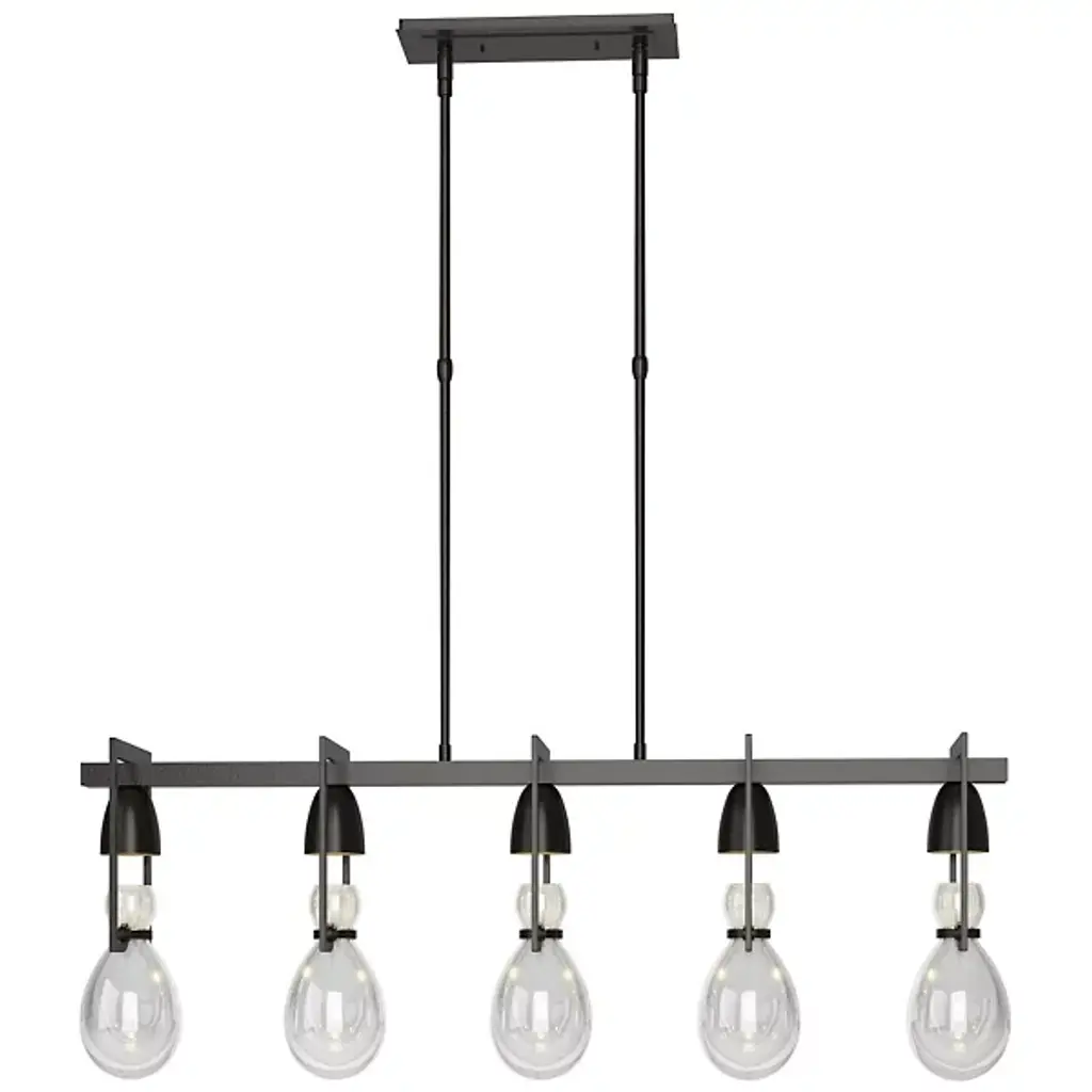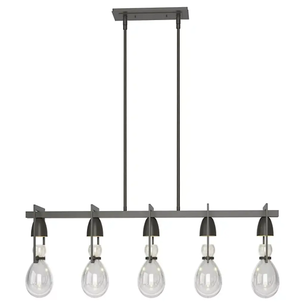 The Apothecary Linear Suspension by Hubbardton Forge is inspired by old fashioned Apothecary's and their many bottles and vessels that seem to have a certain romantic quality. A series of hand blown hourglass forms sit cradled in rectangular frames, each lit with a hidden Halogen lamp that shines from above. This creates an intriguing trickle down lighting effect that gives a unique highlight to the translucent glass and shows off its artisan created qualities. Ideal for use over a dining room table, kitchen island or office to add lighting as well as a modern take on a small piece of the past. Made to order in the USA.