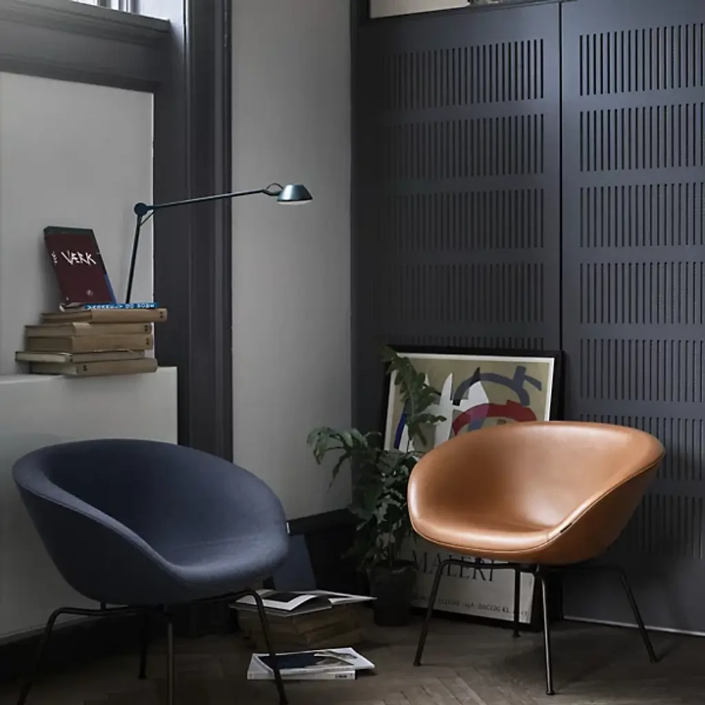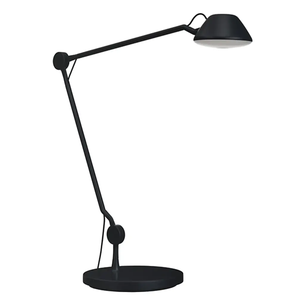 A simple and clean modern piece, the AQ01 LED Table Lamp from Fritz Hansen provides a fresh take on a traditional silhouette. Designed to fit on the smaller surfaces found throughout your home, this piece features a pair of thin and delicate lines that form the body, sprouting from a round base and leading to a dome-shaped shade. The shade can be adjusted with ease, providing the perfect layer of light for the task at hand.