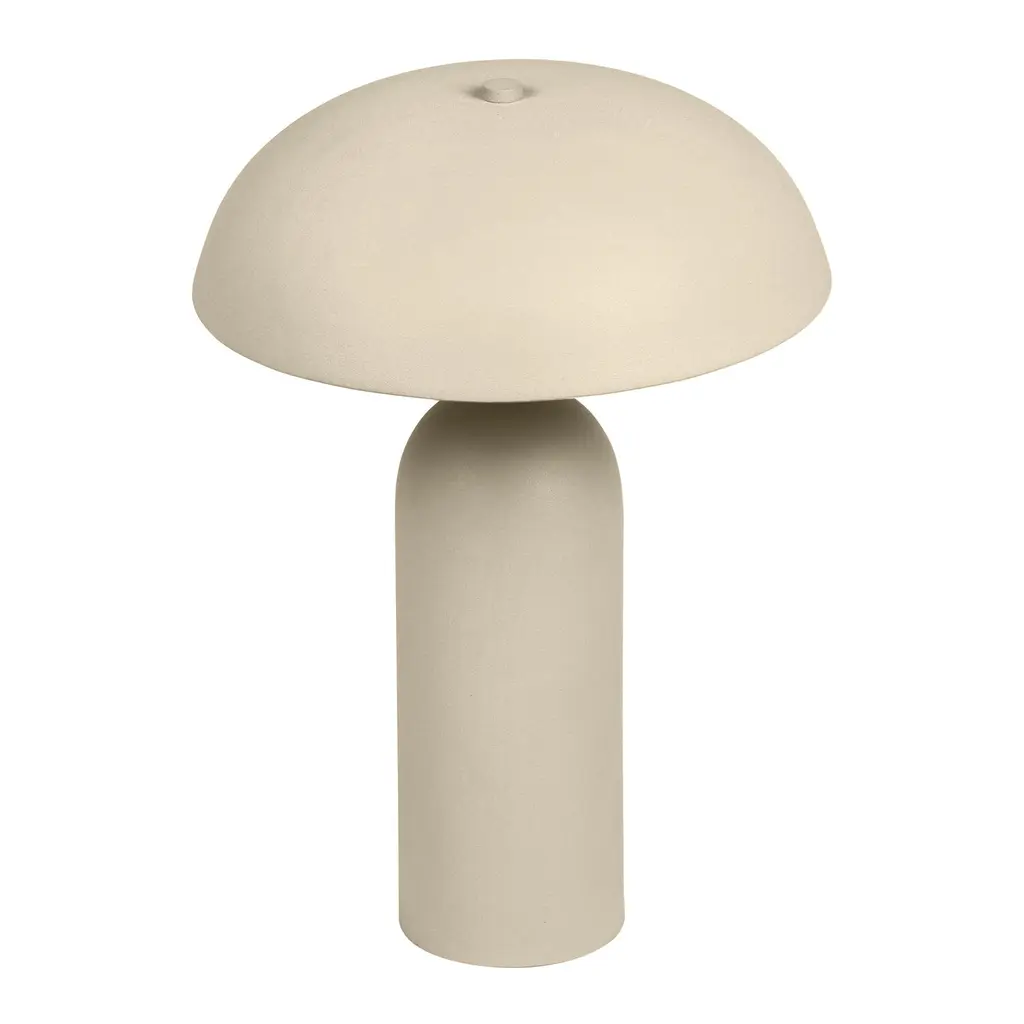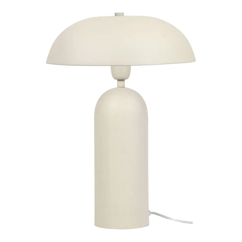 The mid-century-inspired Araceli tabletop lamp becomes an instant decor focal point in any space. Handmade by artisans in India of metal, we adore its on-trend dome shade and matching cylinder base. This retro lamp adds ambient downlighting to any nightstand, end table, or desk while keeping things neutral in a creamy taupe color.