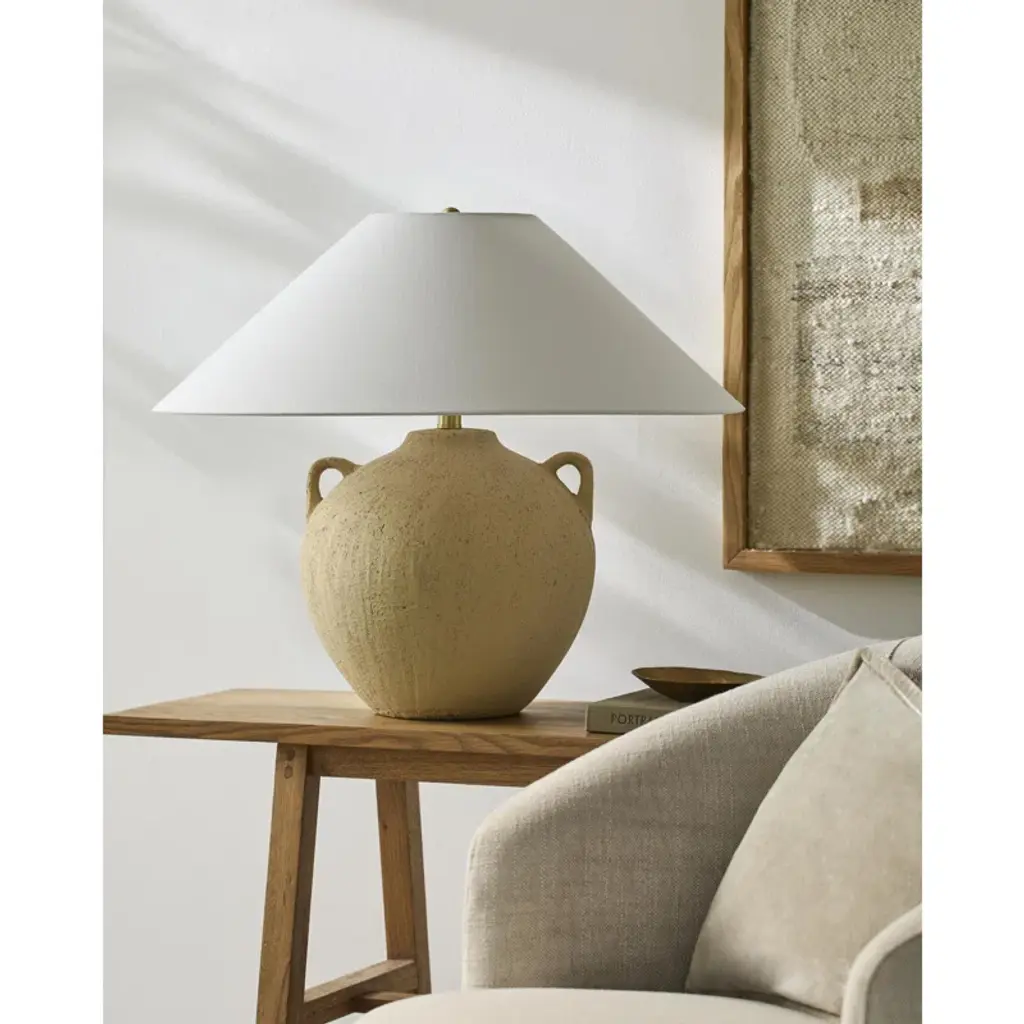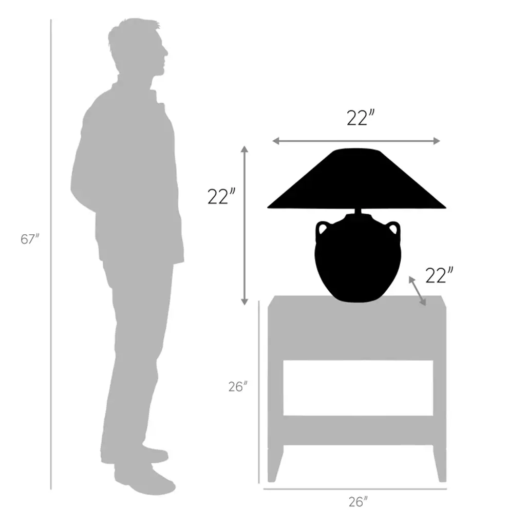 Designed by Galey Alix for Livabliss, combine classic and modern with the Araya lamp. This lamp features a wide linen shade that adds an unexpected twist to its classic ceramic base. Standing at 22 inches tall, this lamp is substantial enough to make a statement in any room.