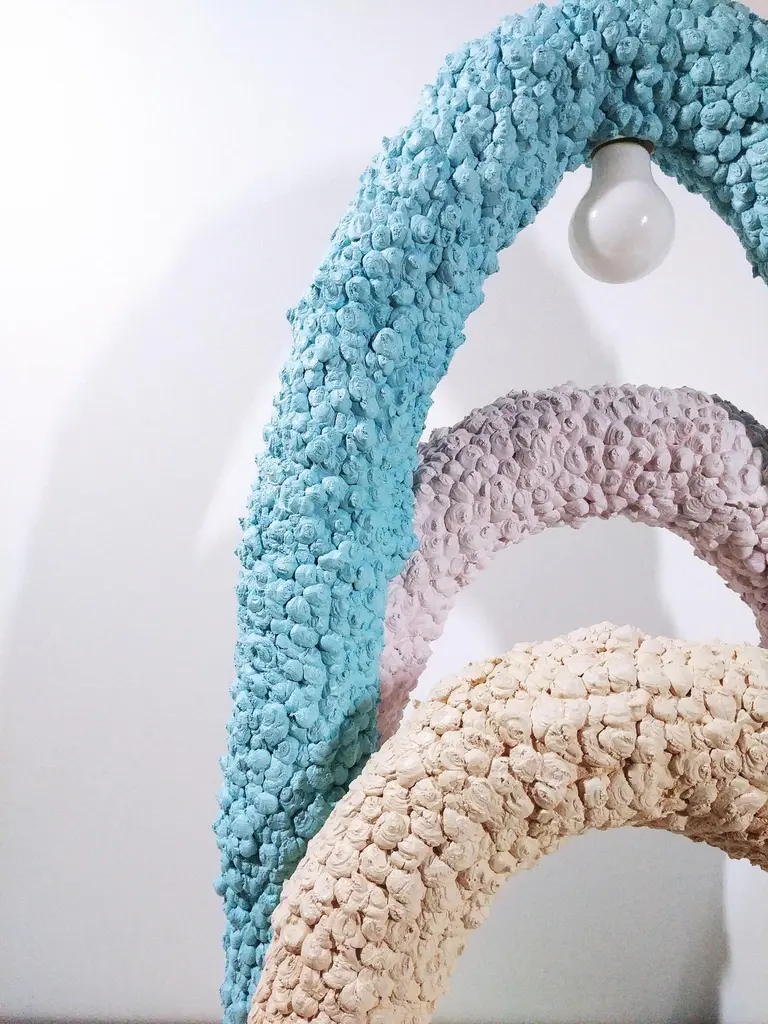 Arc sculpted lamp by Johan DestrumelleUnique piece, handmade in foam and concrete.Dimensions: 75 x 45 x 22cmJohan Destrumelle is a young sculptor/designer artist born in 1995.Curious by nature, he went on to a BTS in product design, then a master's, also in design.During his schooling, Johan was able to carry out various internships, including one in Paris for Céline Wright, and one in Iceland for the studio And Anti Matter.Afterwards Johan started his own creations and he therefore started freelancing.All his creations are unique and hand-sculpted, it has been recognized by many as an important part of the new decade collectible design.