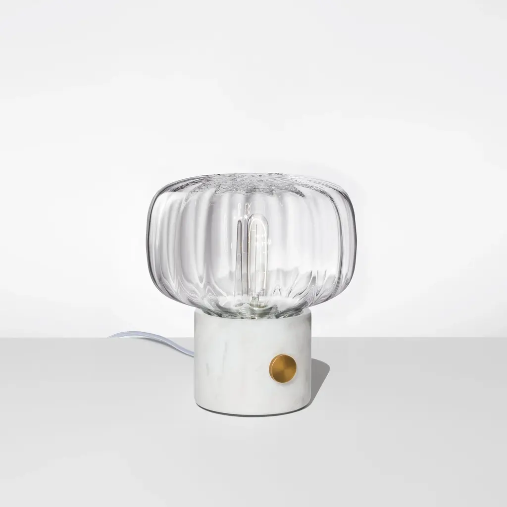 Add an elegant touch to your space with the Arca Petite LED Table Lamp from Niche Modern. The squared-off design, paired with gentle edges, strikes the perfect balance between modernity and warmth. The pristine glass shade is complemented by a luxurious carved marble base, available in black or white with delicate, and distinctive veining. Adjust the ambiance with precision using the satin brass dimmer knob. Highlights