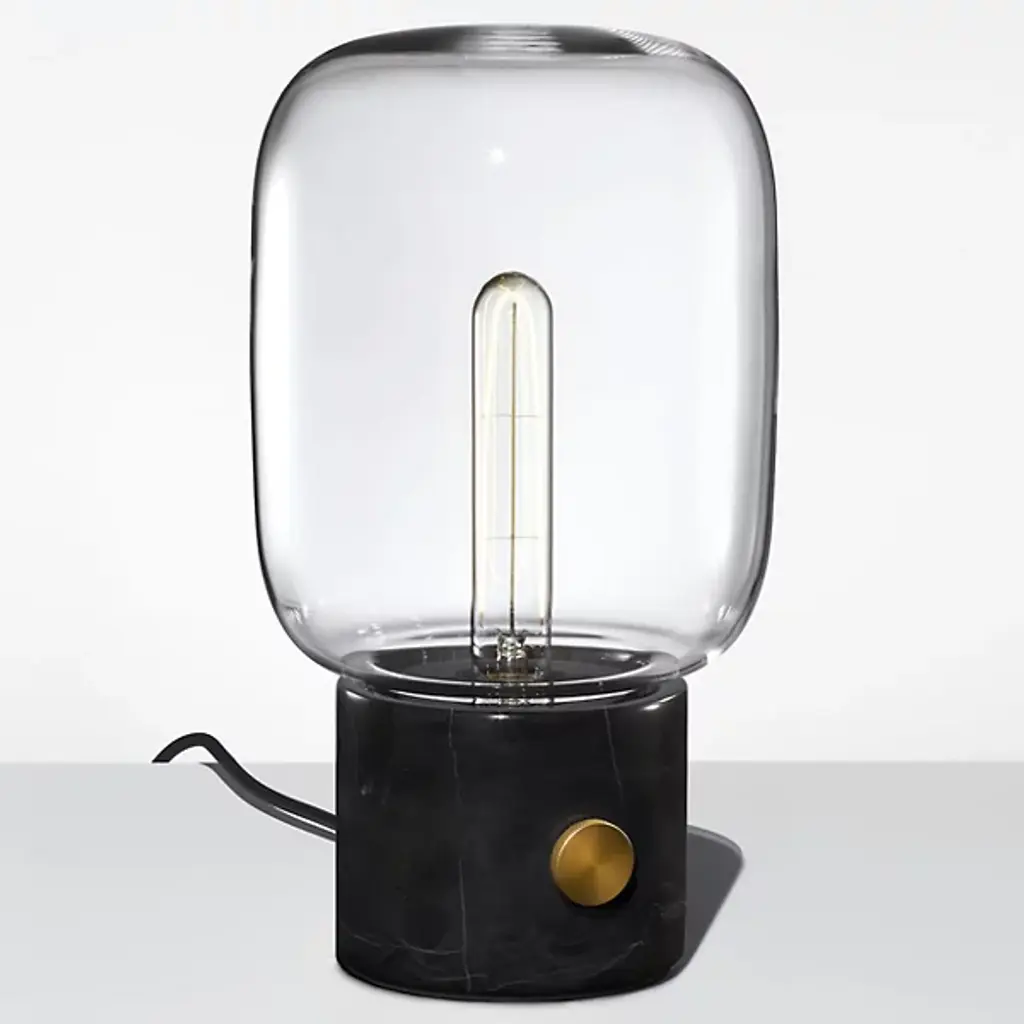 The Arca Tall Table Lamp from Niche brings timeless sophistication with a modern edge, featuring sleek lines and softly rounded details. Perfect for brightening a cozy reading nook or adding a warm glow to a chic living space, it combines style and grace that lasts. A pristine glass shade rests on a luxurious carved marble base, each uniquely veined. A satin brass dimmer knob adds an elegant touch, letting it easily set the perfect ambiance.