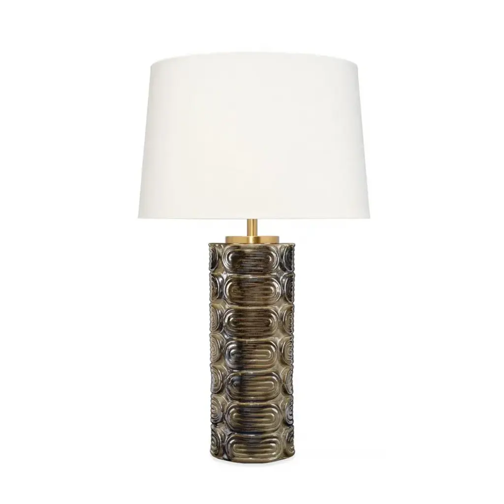 Inspired by the storied arches of the Colosseum, our Arcade collection reimagines an iconic architectural motif in moody curves and colors. A graphic, gold-accented addition to any tabletop, our polished porcelain Arcade Carnaby Lamp's large scale and classic minimalist form looks great on a dude's desk or grand on an elegant entryway console.