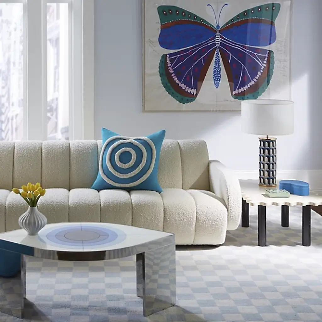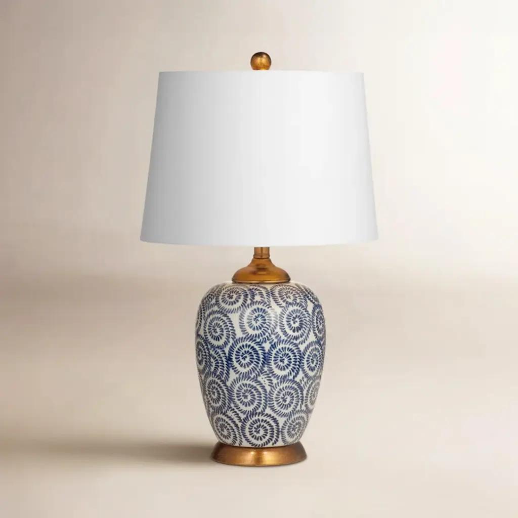 The grand architectural gateways of ancient colosseums inform the clean, high-style display of the Arcade Table Lamp from Jonathan Adler. It’s a minimalist design with a mid-century modern charm. The table lamp shows its glamorous side with shiny metal end caps on either side of its body. This polished porcelain body gets the eyes scanning from left to right with evocative curves that take on a graphical look. The bold colorway of the architectural-inspired pattern complements the pristine hue of the paper lamp drum above. The depth-filled shade filters the bright light into a cozy warm aura.