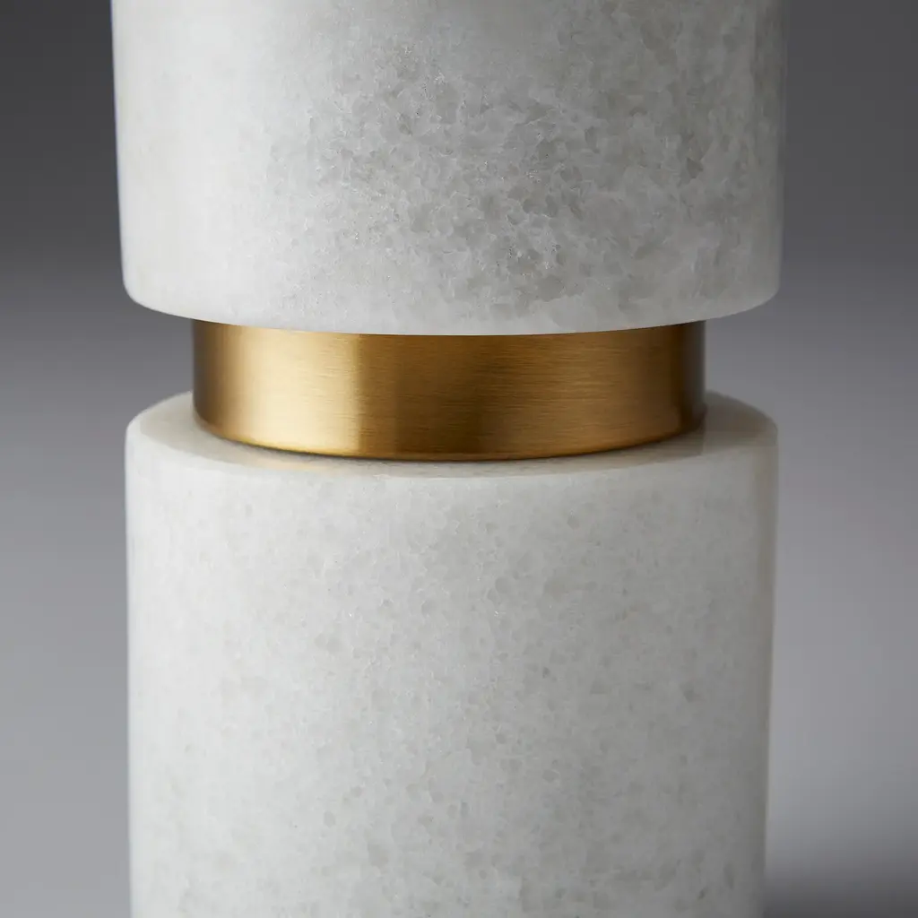 The standout shape of this table lamp is reminiscent of 1920s elegance. The Archer table lamp boasts a generous proportion in its white linen shade. A single 100w medium base bulb provides ample illumination from the dimmable light source. Coupled with a gorgeous brass and marble accents to complete the look of this luminary, the Archer lamp is perfect for any upscale bedroom, transitional entryway, or mid-century modern living room ensemble.
