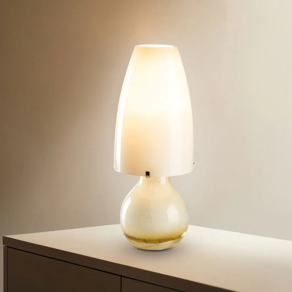 Introduce a touch of ancient Murano tradition to your contemporary home with the Argea Table Lamp from Venini. Crafted with opaline and transparent glass and adorned with precious gold or silver leaf, this statement piece exudes luxury and sophistication. Available in chrome or gold, it's a perfect addition to your elegant decor. Highlights