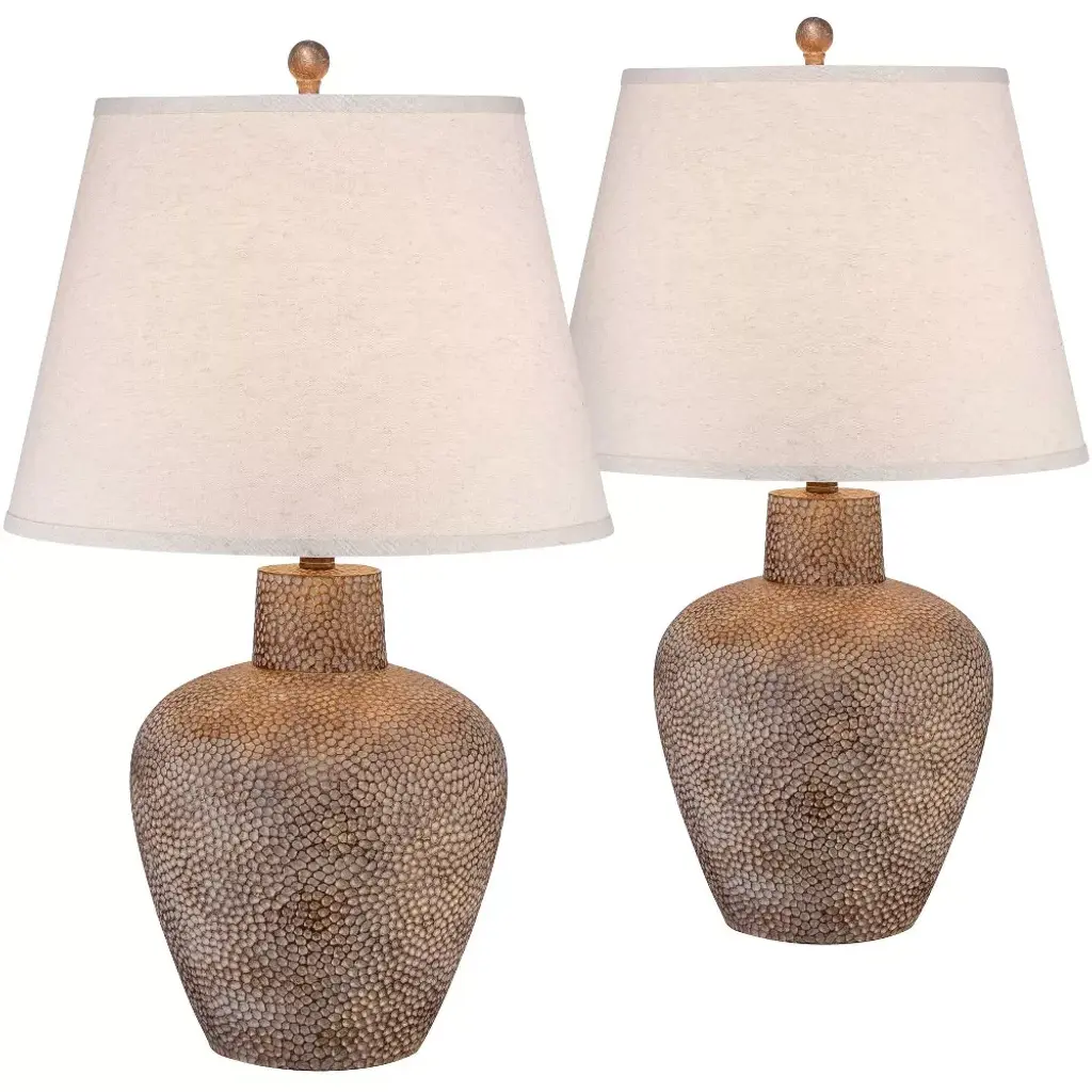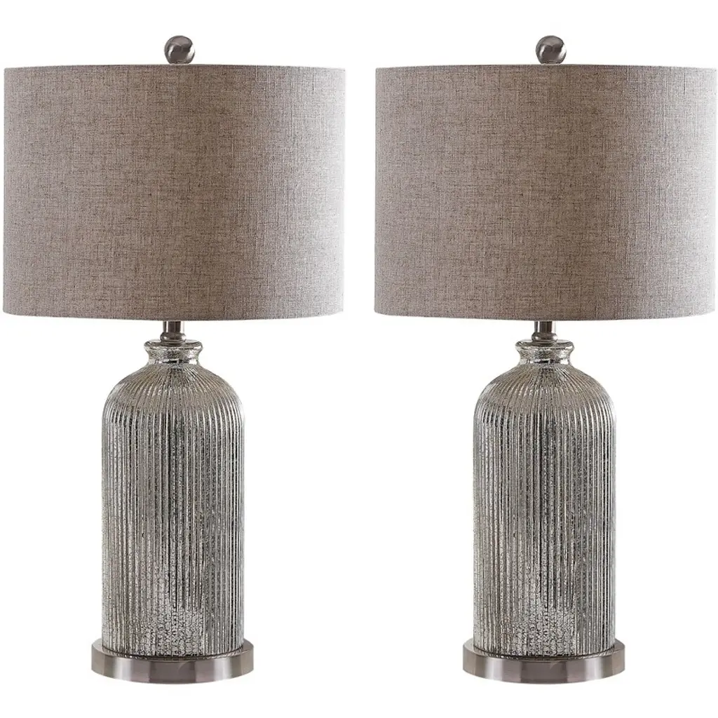 Standard Lamp Specifications for #SL485:Product Type: Table LampHeight: 29"Finish: Antique SilverConstruction: ResinSocket: (1) Aluminum 3-way Med. Base Type A 150W Max socket(s). (Bulb(s) not included)Switching: (1) 3-way turn knob switch(es) located on the socket.Cord: 6''5'' (from base) long clear silver SPT-2 cord set with a 2 prong polarized plug.UL/CUL and/or ETL listed: YesHarp Size: 9 inches (including the saddle)Standard Packing: 2 per carton (shade packed separately).Lamps & Shades per SKU: 2Lamping: (1) Aluminum 3-way Med. Base Type A 150W Max socket(s).Shade Size and Description: Light beige lenore fabric laminated to styrene hardback with self fold trim measuring 9" x 18" x 12" w/ .5" drop (Top x Bottom x Slant).Bulb Included: NoMaterial Description: constructed from handcast & sanded resin. Painted and antiqued by hand.
