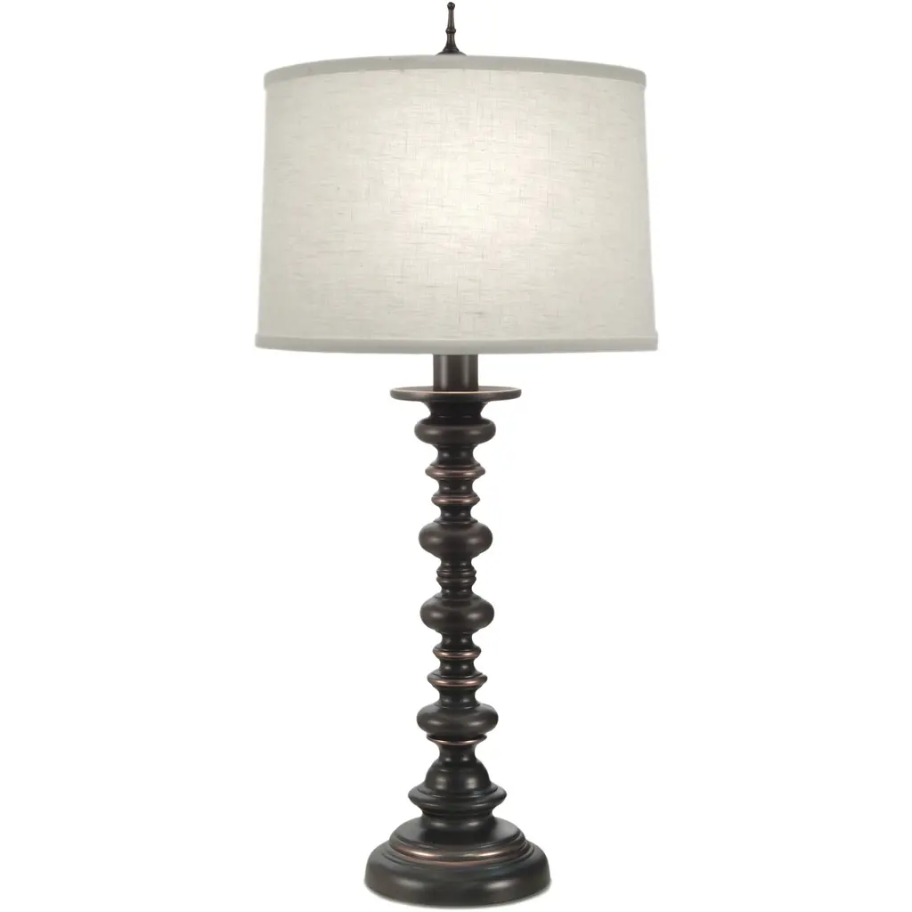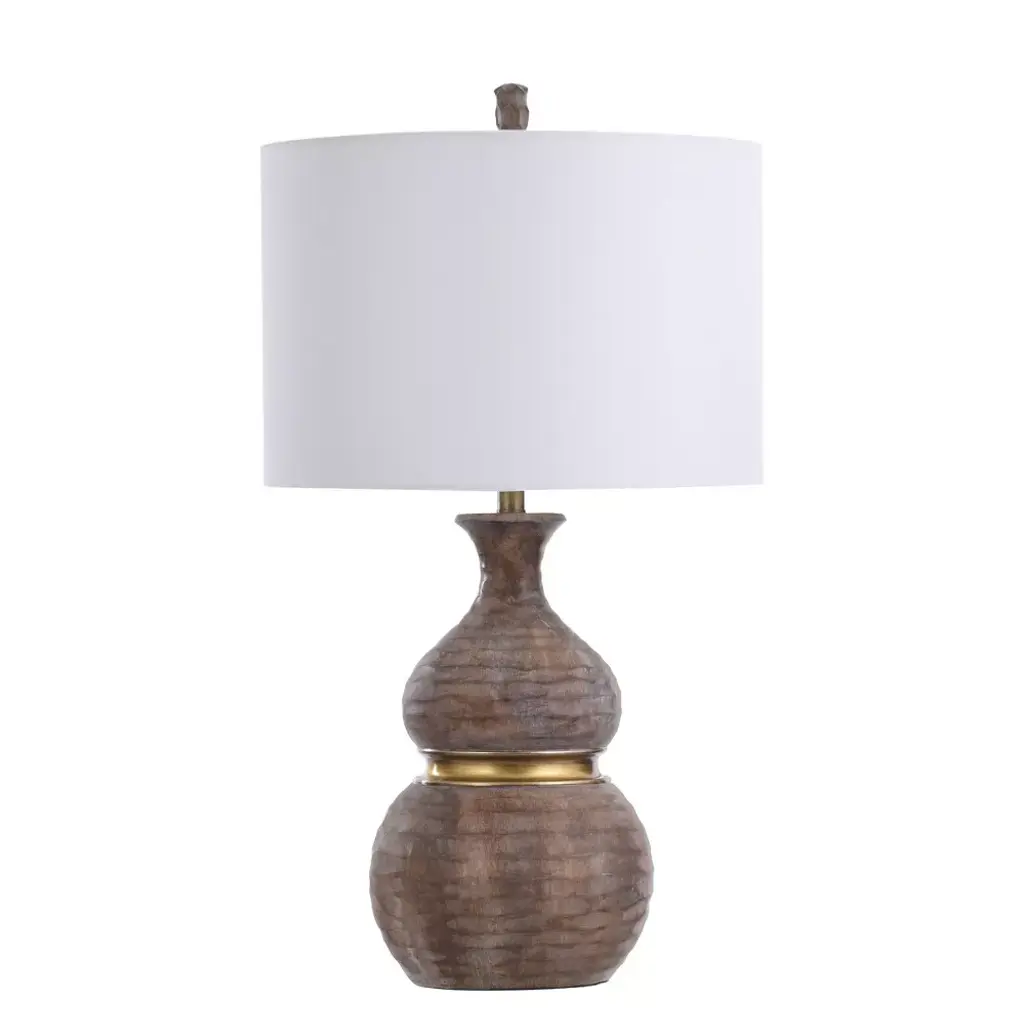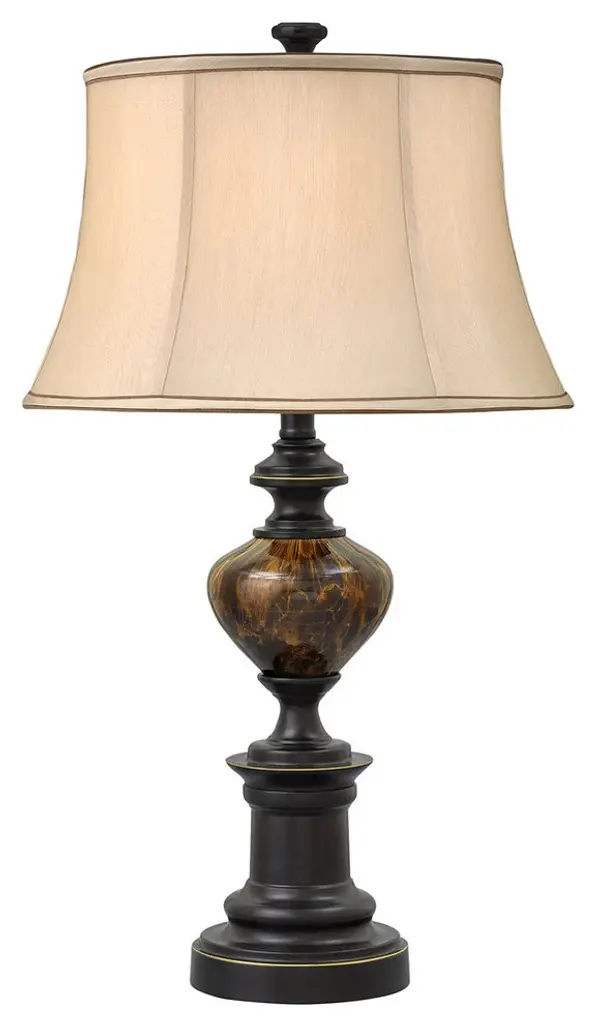 Standard Lamp Specifications for #FM985:Product Type: Table LampHeight: 28"Finish: Madison Bronze and Dark GoldenrodConstruction: Steel/GlassSocket: (1) Aluminum 3-way Med. Base Type A 150W Max socket(s). (Bulb(s) not included)Switching: (1) 3-way turn knob switch(es) located on the socket.Cord: 6''5'' (from base) long black SPT-2 cord set with a 2 prong polarized plug.UL/CUL and/or ETL listed: YesHarp Size: 8 inches (including the saddle)Standard Packing: 2 per carton (shade packed separately).Lamps & Shades per SKU: 1Lamping: (1) Aluminum 3-way Med. Base Type A 150W Max socket(s).Shade Size and Description: Cream Silk Drum bell shade with Dark Gold underfold trim measuring 12" x 16" x 10" w/ .5" drop (Top x Bottom x Slant).Bulb Included: NoMaterial Description: constructed from polished, plated, and lacquered steel.