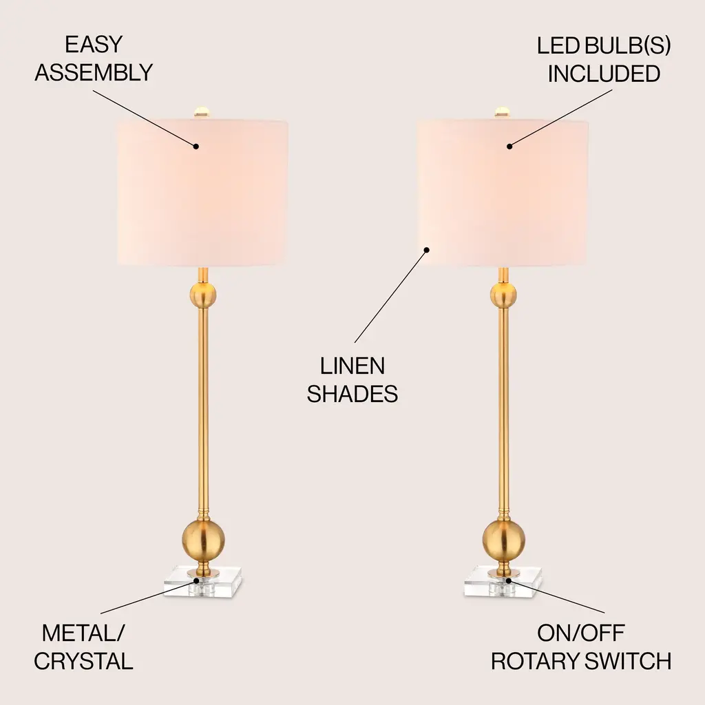 Aria 34" Metal Led Table Lamp, Brass With Crystal Base (Set Of 2) By Jonathan Y - Brass