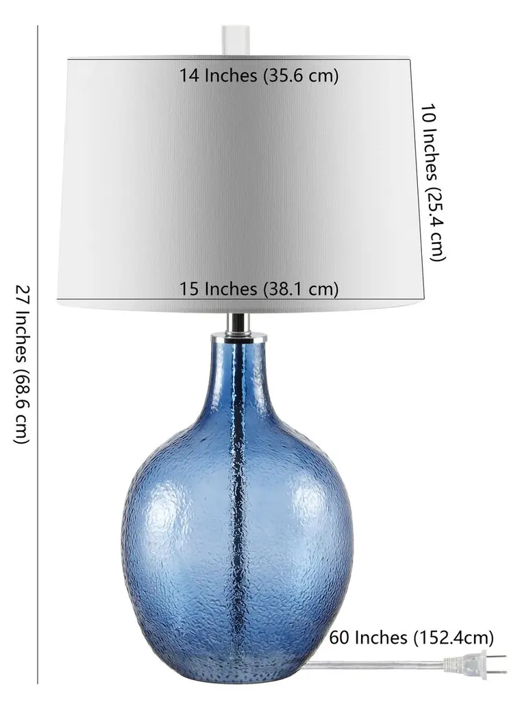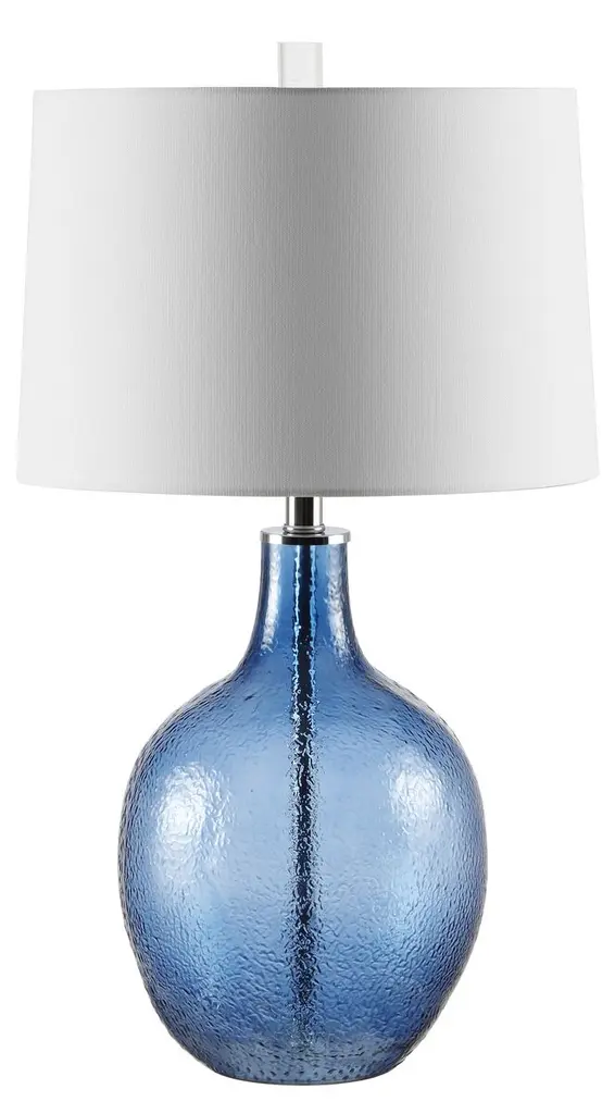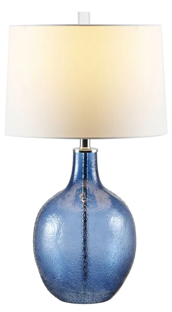 Sculpturally elegant at any time, the curvaceous textured-glass body takes on an especially entrancing sparkle when the table lamp is illuminated.