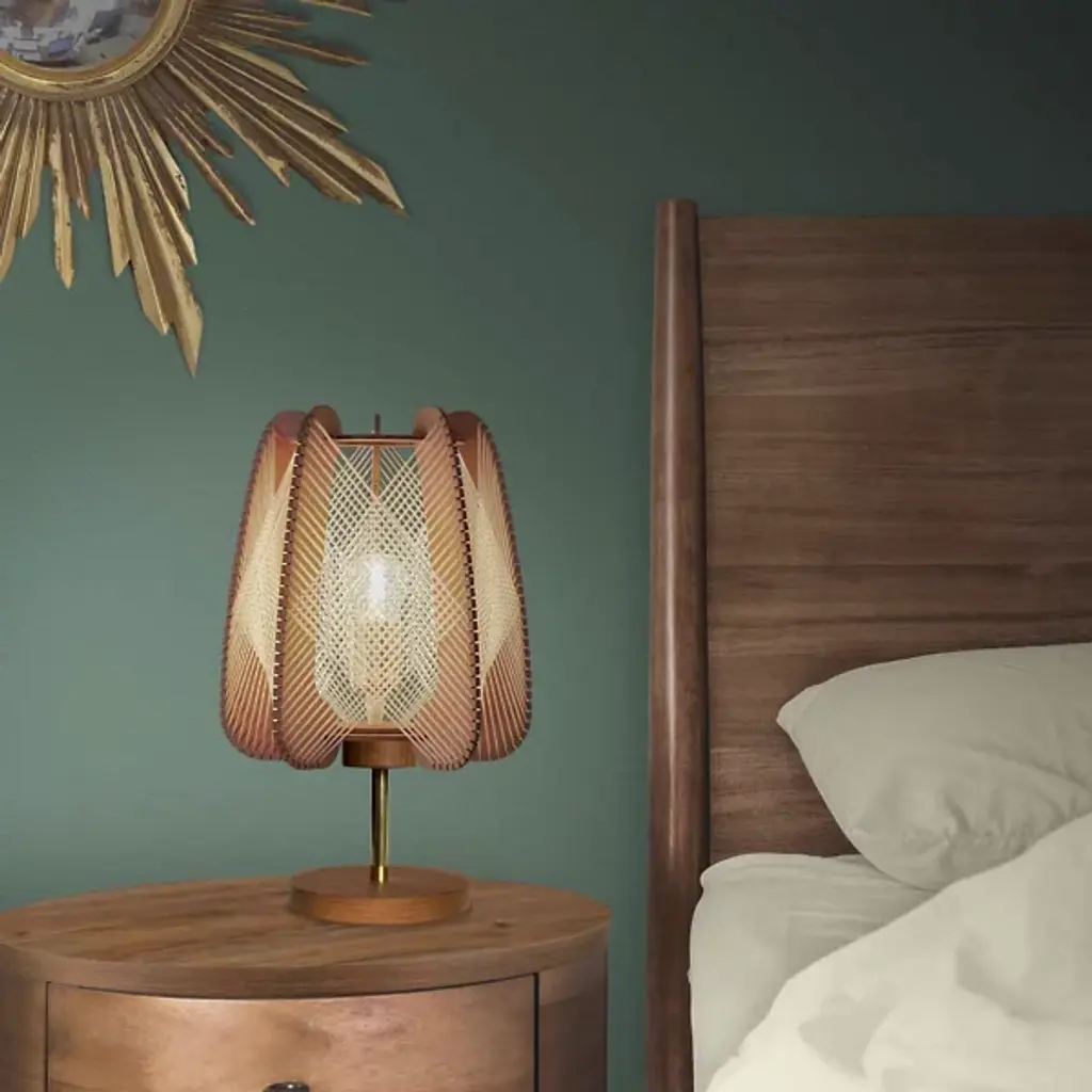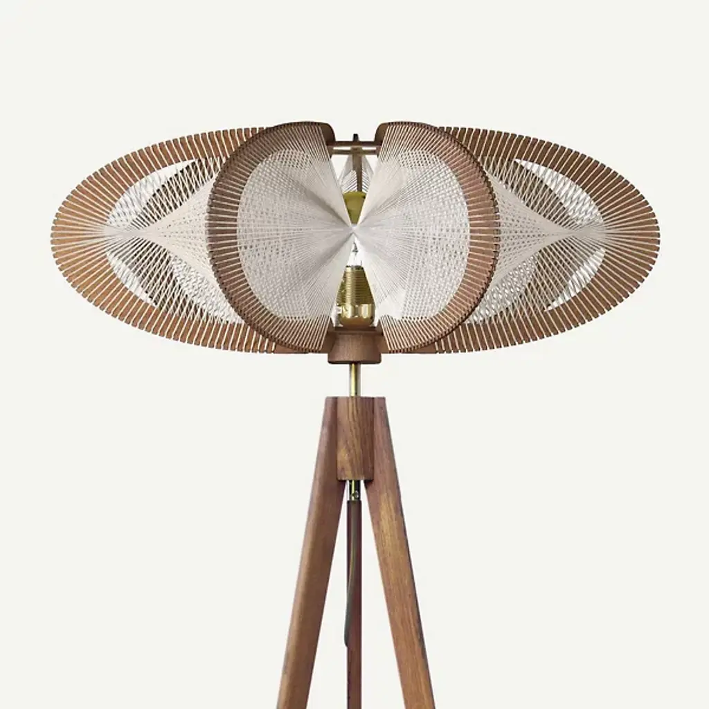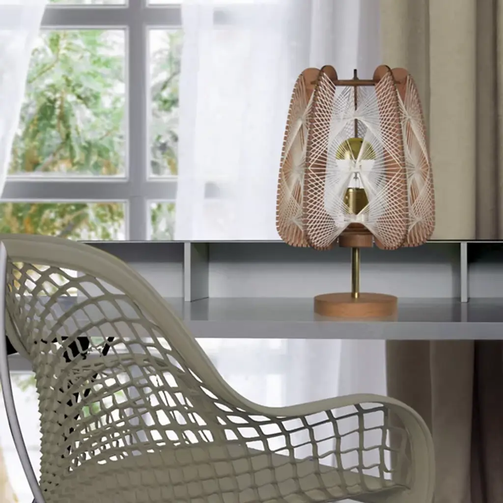 The Arioca Table Lamp by LaFabLight brings a light, lantern-like silhouette to tables, combining natural materials with the refinement of hand-craftsmanship. Fine strands of Ecru Cotton thread are formed into a soft, translucent shade, casting a warm, even glow accompanied by subtle shadows. Gently curved wooden ribs sourced from French forests form the lamp’s open frame, encircling a central light source. Each lamp is made to order in France, and its design features a central light and shade elevated on a slender metal stem that contrasts with the surrounding wood.