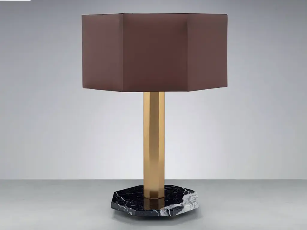 Modern design takes the spotlight in this table lamp. The pairing of sharp angles, marble, antique brass plated iron, and black cotton shade is classy and cosmopolitan. It has the capacity to bring a gleaming glow to the living room interior.