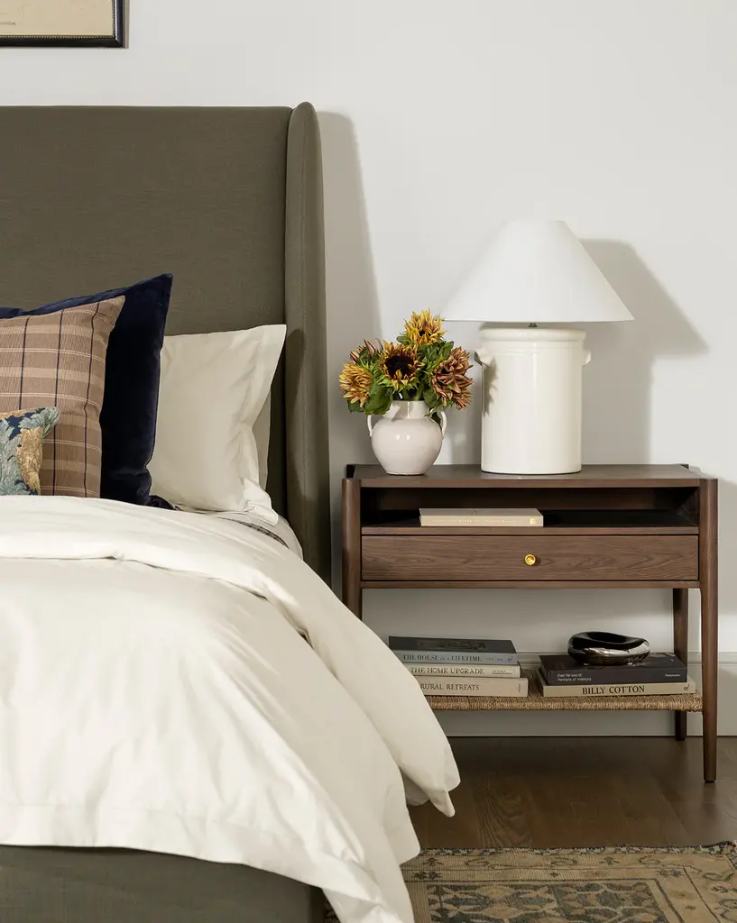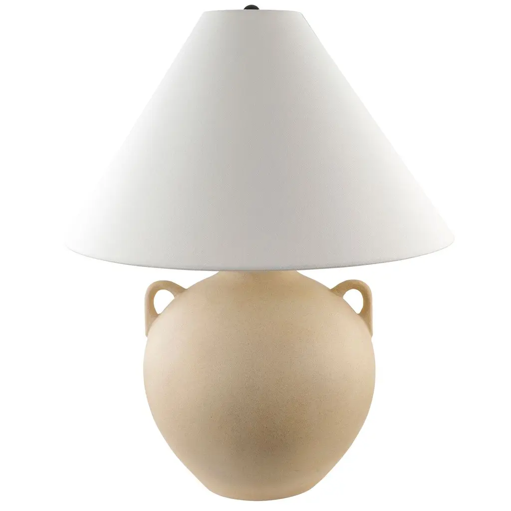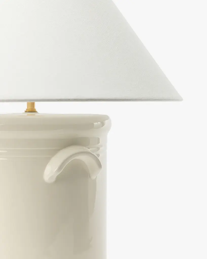 A classic design with a contemporary feel, our Arles Table Lamp exudes a chic yet soft sophistication. The neutral-toned ceramic base, brass accents, and white linen shade lend to timeless versatility, while the handle-like detailing adds a distinct yet refined touch of style. Placed on a side table or featured on an entryway console, it brings a sense of elegance to your home lighting and decor.