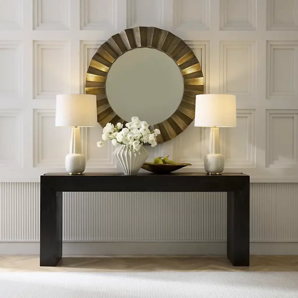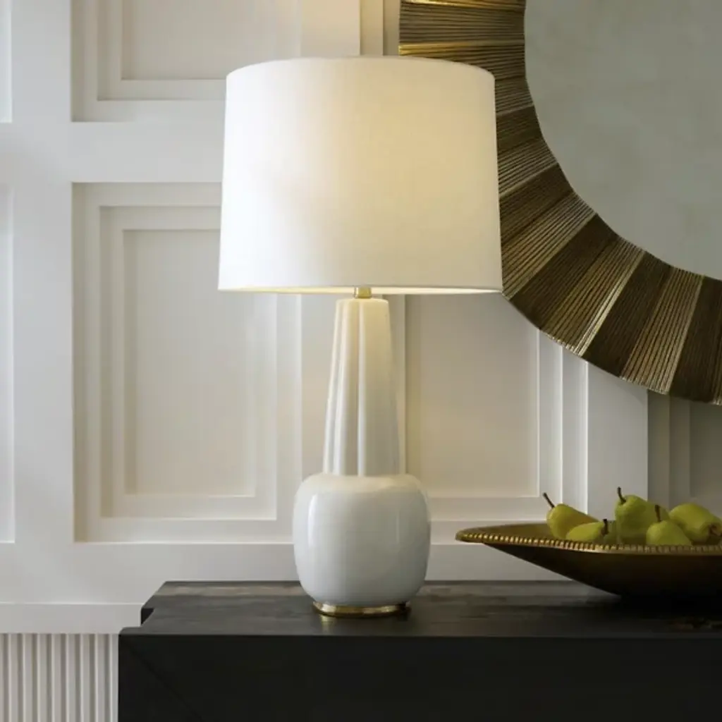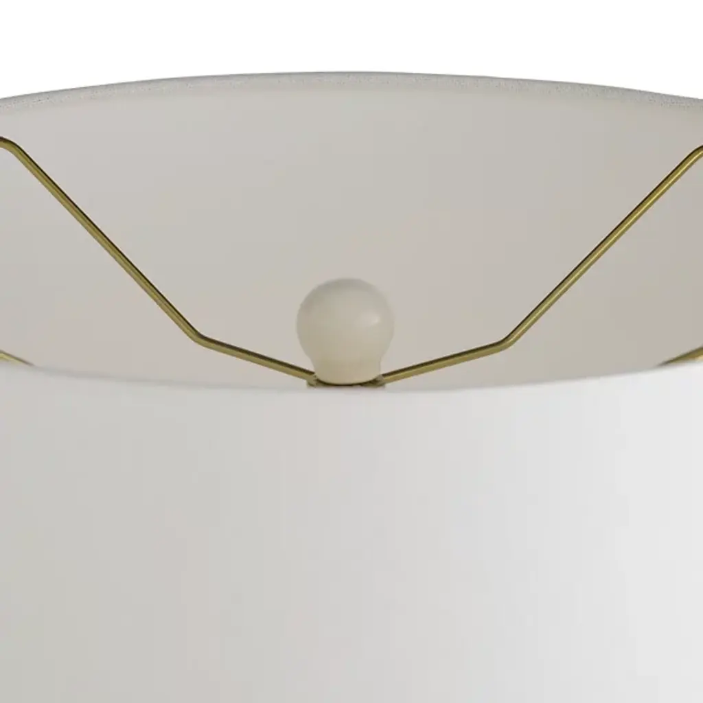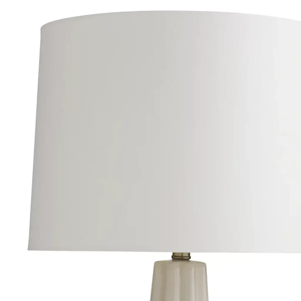 The Arlington Table Lamp from Arteriors combines traditional porcelain craftsmanship with refined proportions that suit both classic and contemporary settings. Elongated ribbed neck towers over a rounded base, creating vertical emphasis. Ivory finish accentuates the lamp's graceful curves while maintaining neutral versatility for bedrooms, living areas, or office spaces. An off-white linen drum shade with cotton lining provides warm, diffused illumination, and a matching porcelain finial completes this timeless design, which adapts to various interior styles.