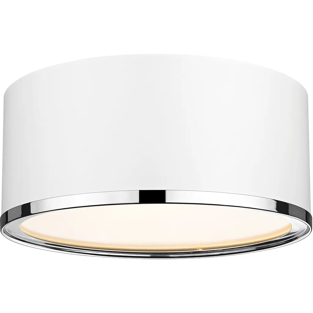 This two-tone metal flush mount light presents a sleek and smooth impression. Perfect for a hallway, home office, or small foyer, this matte white lamp with rubbed bass trim is simplistic yet stylish.