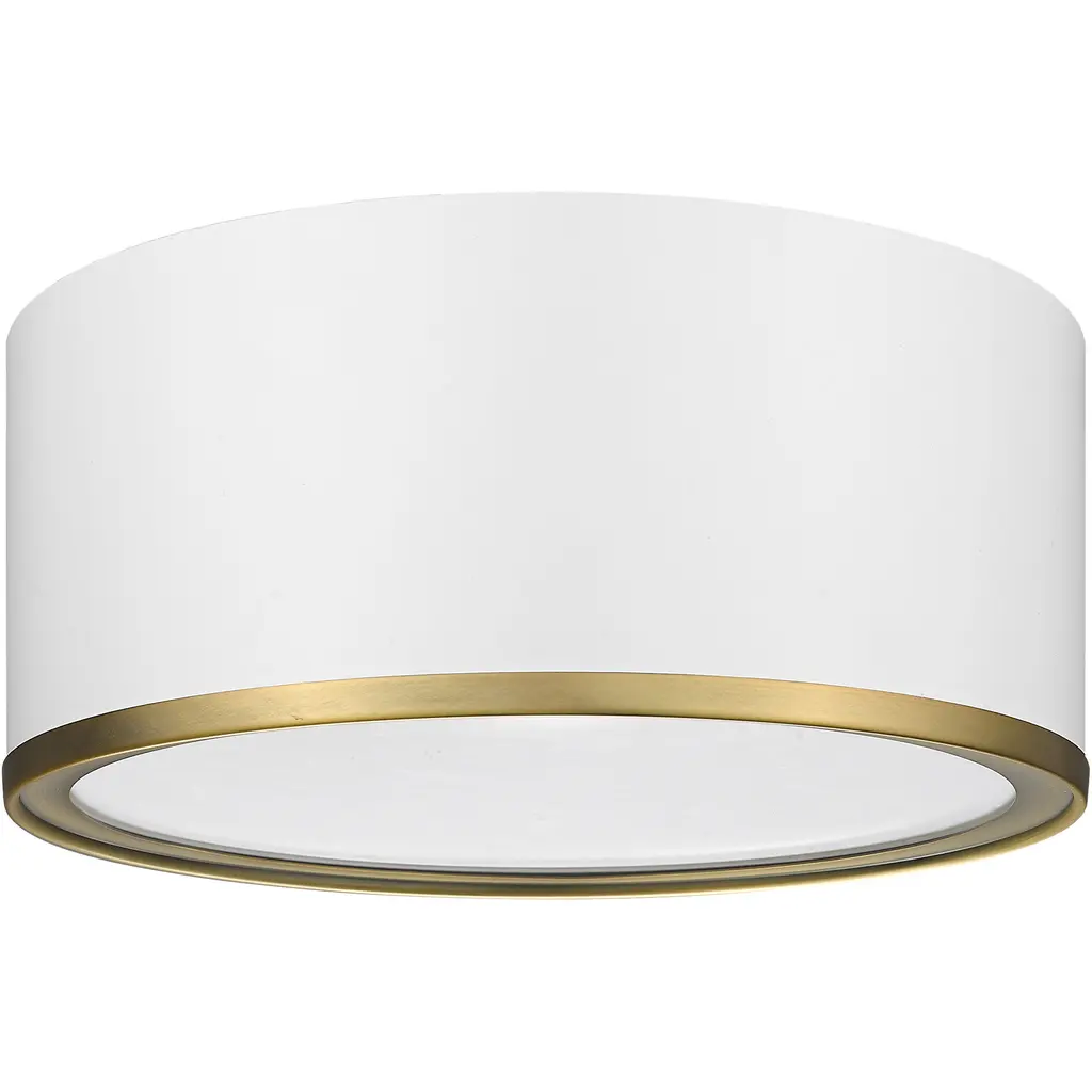 Arlo 2 Light 12.25 Inch Matte White And Rubbed Brass Flush Mount Ceiling Light