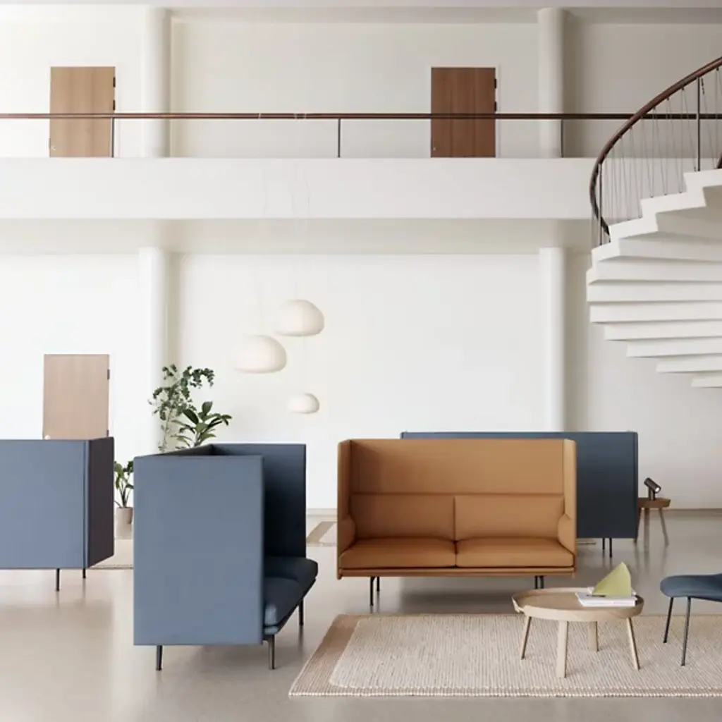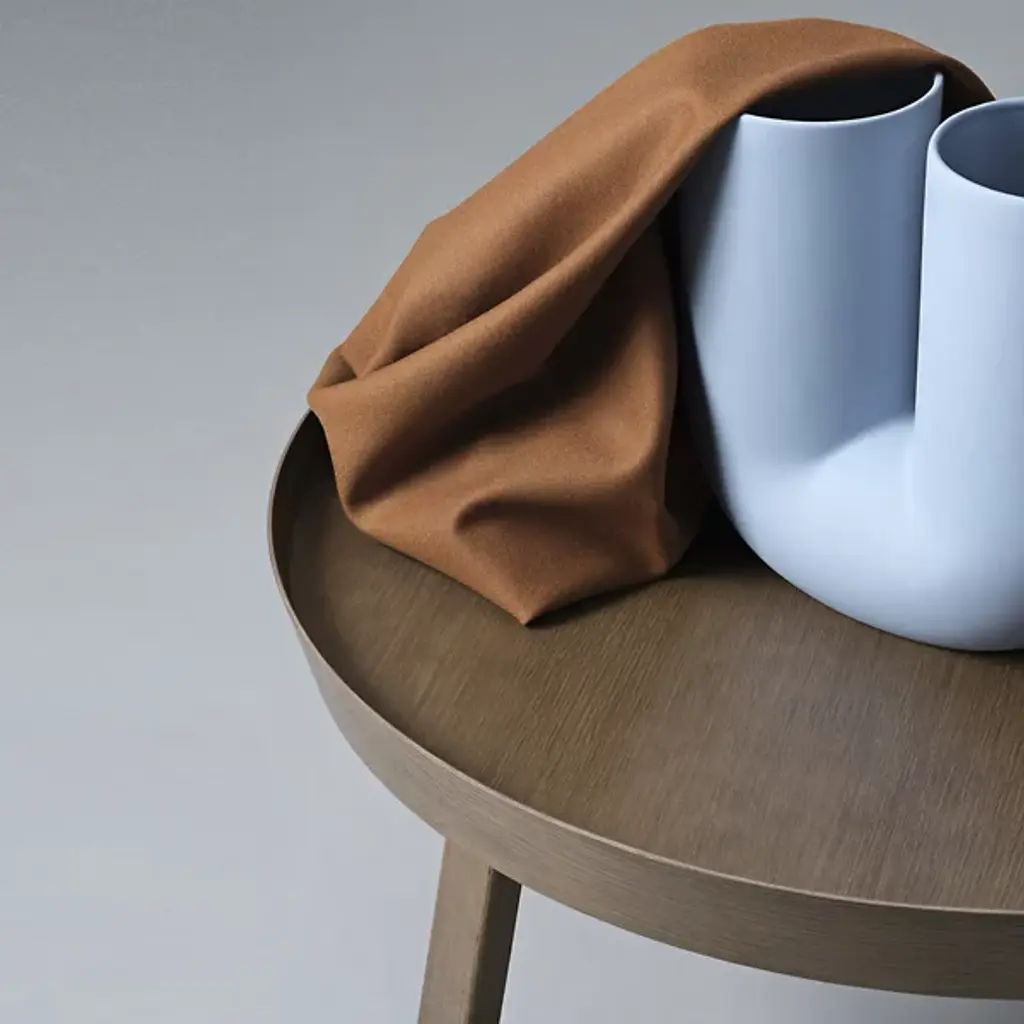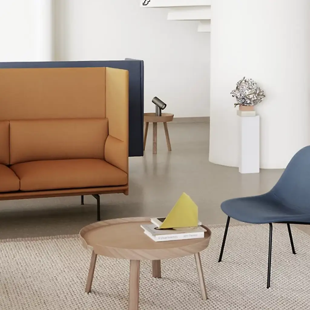 Add a stylish Scandinavian presence to inside living spaces with the Around Coffee Table from Muuto. A contemporary, clean-surfaced piece fashioned from smoothly-lacquered hardwood, it uses four angular legs to support a circular tabletop. It seats a shallow rim around the tabletop that bevels slightly outward, sweeping around the edge of the tabletop and nearly enclosing it, adding a touch of architectural texture while leaving a small space for lamp or phone cords to transit to the tabletop.