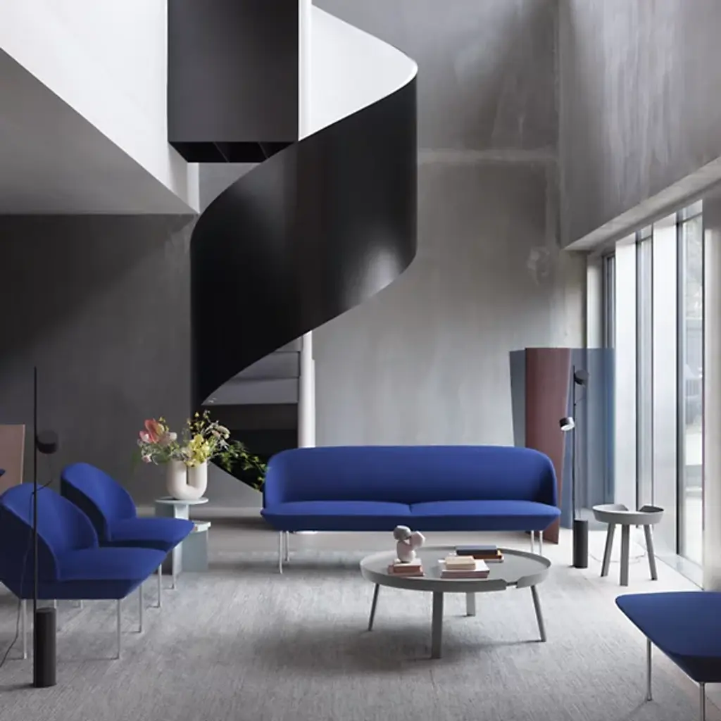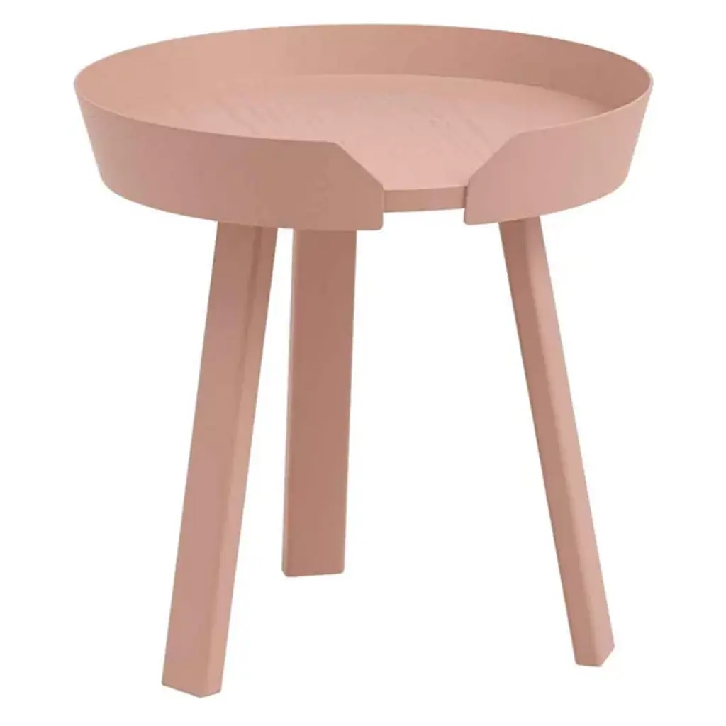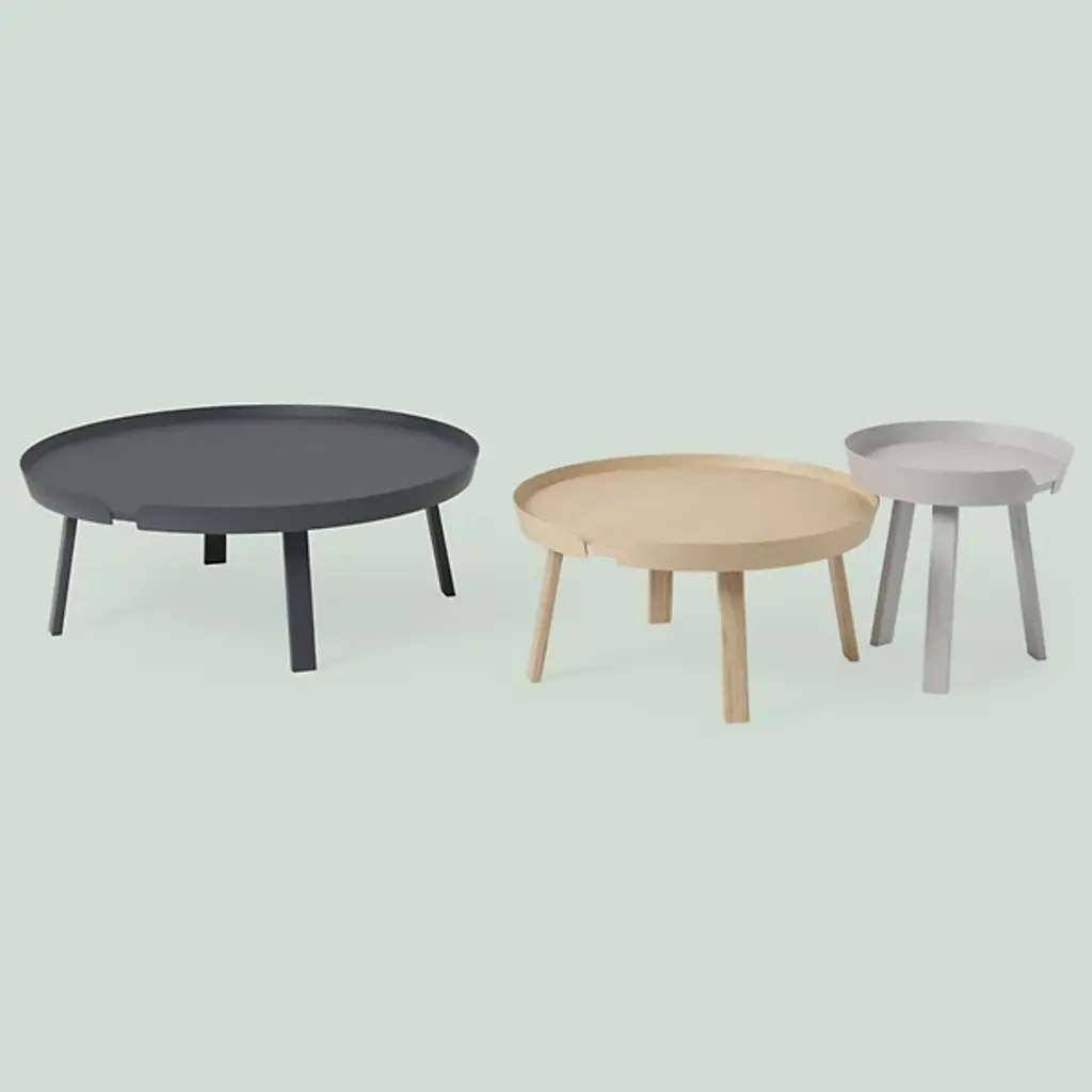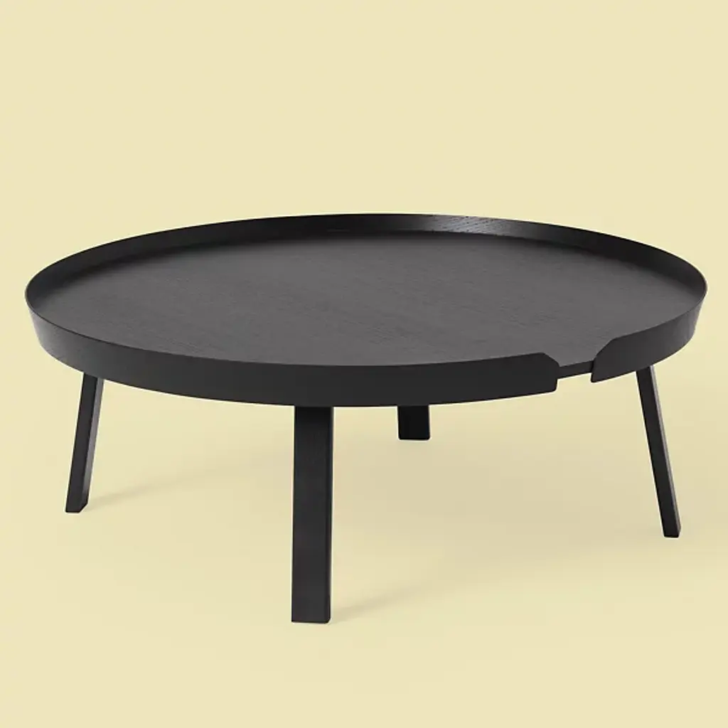 Add a stylish Scandinavian presence to inside living spaces with the Around Coffee Table from Muuto. A contemporary, clean-surfaced piece fashioned from smoothly-lacquered hardwood, it uses four angular legs to support a circular tabletop. It seats a shallow rim around the tabletop that bevels slightly outward, sweeping around the edge of the tabletop and nearly enclosing it, adding a touch of architectural texture while leaving a small space for lamp or phone cords to transit to the tabletop.