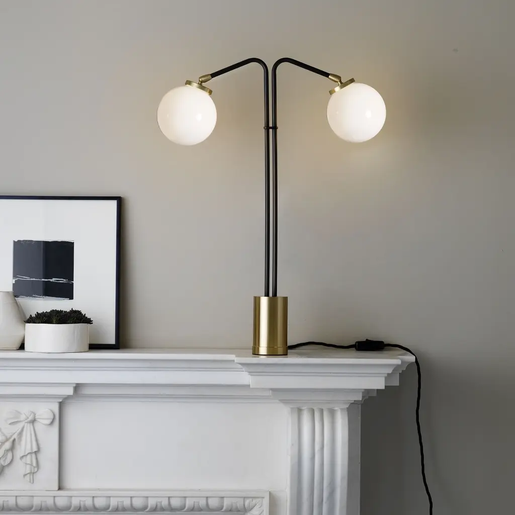 Add a touch of Italian mid-century modern elegance to your space with the Array Opal Table Lamp from CTO Lighting. The solid brass base and hand-blown glass opal shade create a sophisticated and artful design. Emitting even and ambient illumination, this sculptural lamp is perfect for side tables or desks. Highlights