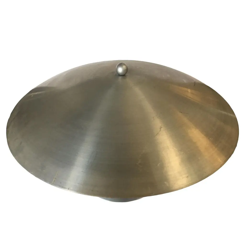 This stunning aluminum Art Deco style table lamp features a large 23" spun aluminum shade fixed to a cone-shaped spun aluminum base with fixed Saturn rings in the center.See the other listing for other size lamps in this style.Available- 4