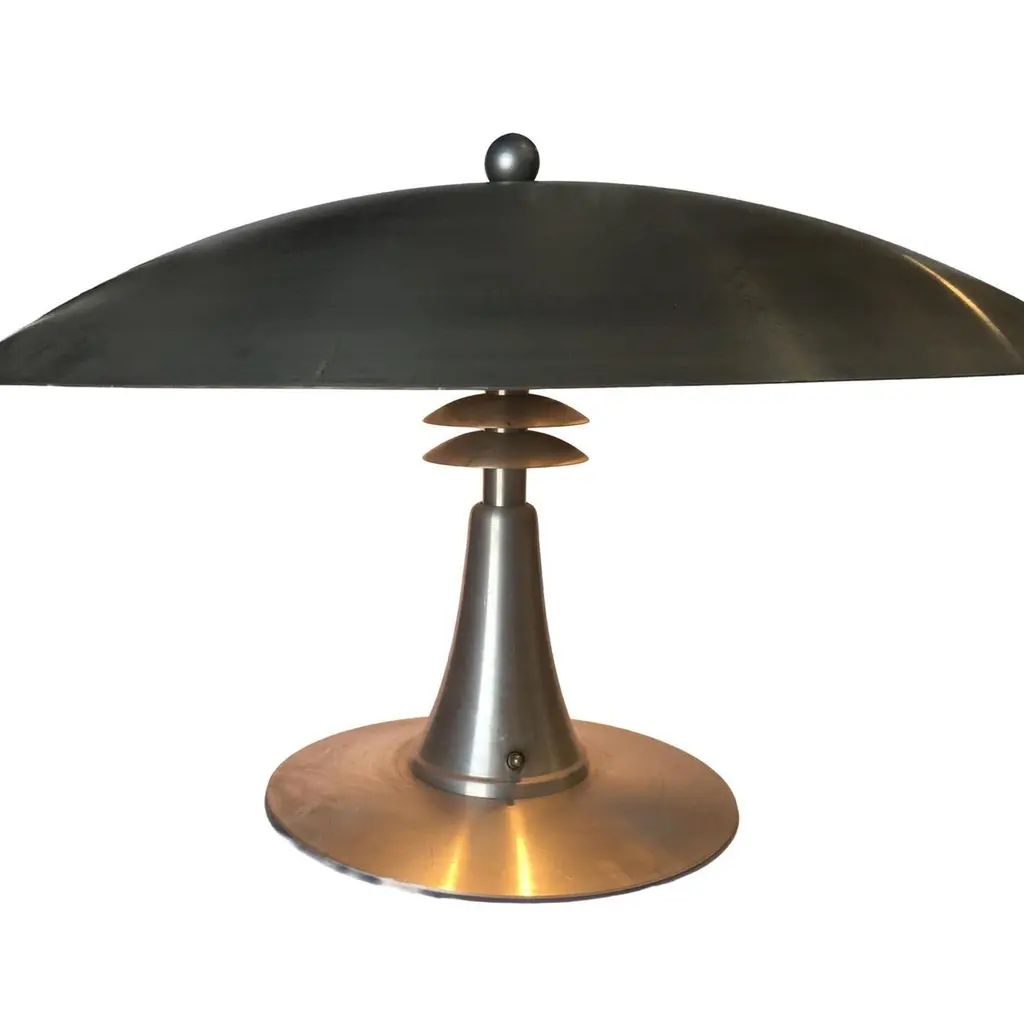 Art Deco Style Machine Age Table Lamp With Large Spun Aluminum Shade