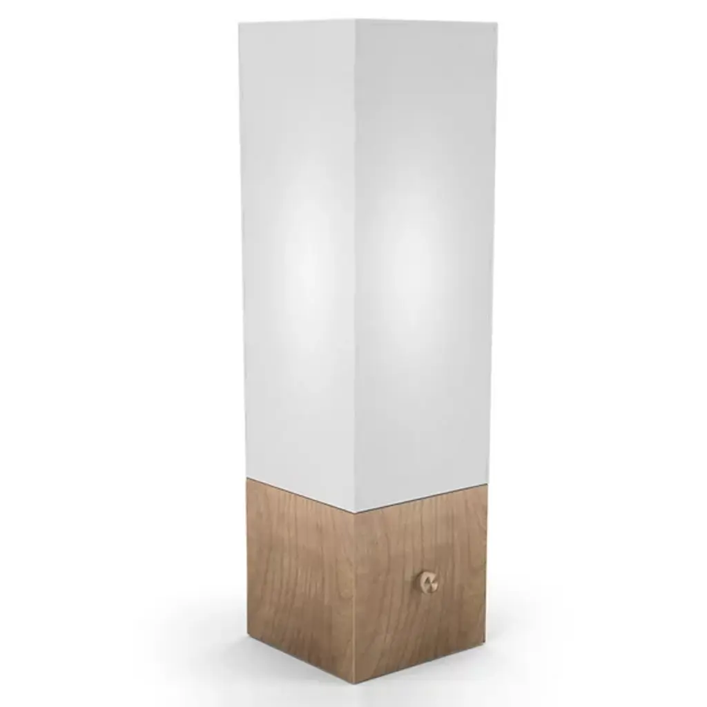 Presented by Seascape Lamps, the Art Table lamp pulls one’s gaze with a smooth, sculptural figure. The piece features a tall, frosted acrylic rectangular shade that sits atop a rich wooden base. A solid brass dimmer switch adds an elegant touch to this modern table lamp offering. Display on tables of choice in locales that will benefit from the elevated illumination experience.