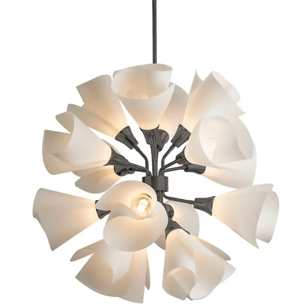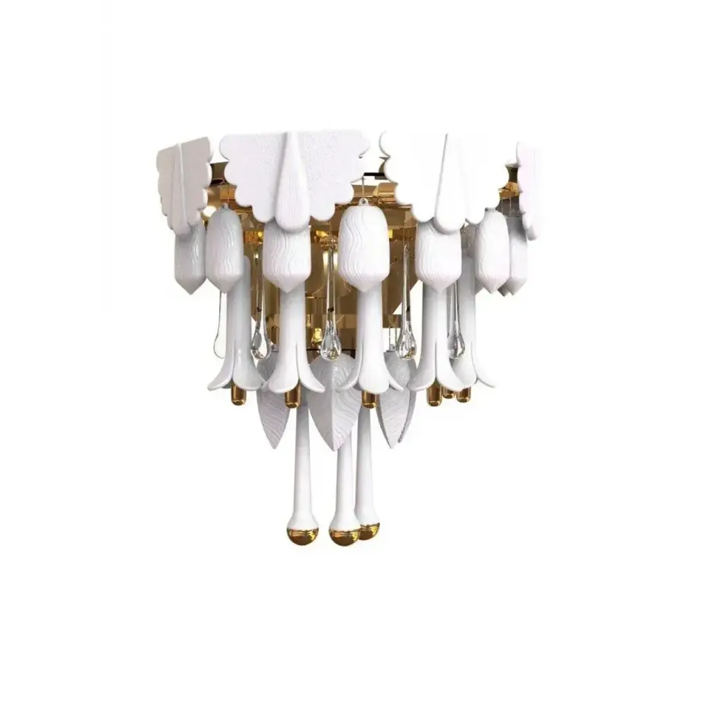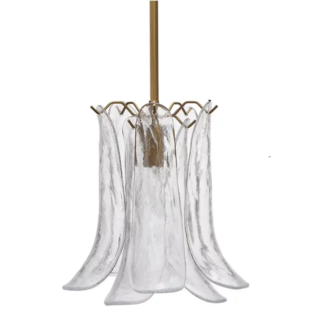 Table lamp with precious petals glass. The ivory colour blends with the crystal, creating an atmosphere of warm luminosity. Crafted entirely by hand, using traditional Venetian glassmaking techniques, this lamp creates retro atmospheres by softly reflecting the light. The burnished finish underlines the elegance of the design.