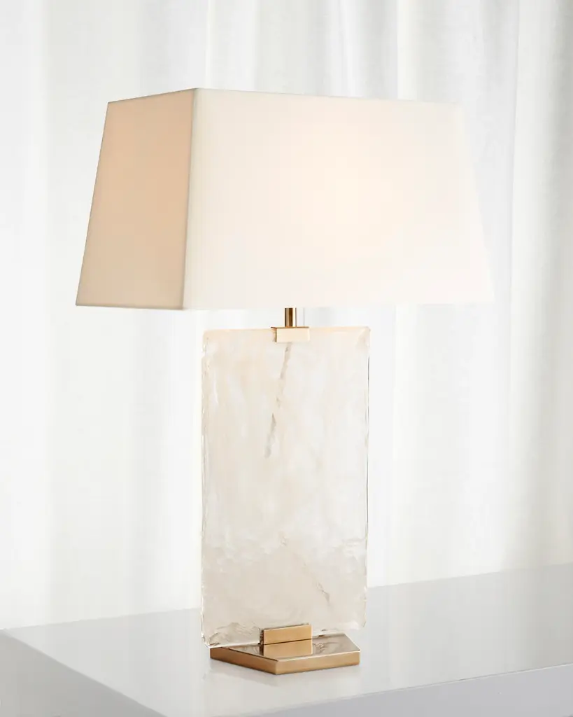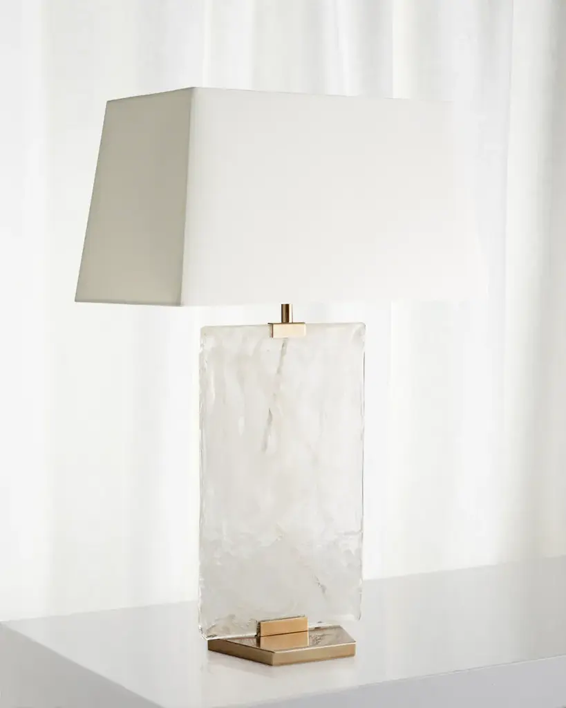 Glass and steel table lamp. Opal swirl glass pattern will vary. Shade dimensions: 11"W x 10.5"T. Uses one 150-watt bulb. Overall: 10"W x 7"D x 18"T. Cord length: 8 ft. Imported. Boxed weight, approximately 25 lbs. About Arteriors: For more than 30 years, Arteriors' pursuit of extraordinary product design, impeccable style, and artisanal quality craftsmanship have built their foundation as a premier resource within the lighting, furniture, wall décor, and decorative accessory categories. Arteriors continues to evolve their product offering, forming objects of perfect proportion and scale, resulting in bold interiors, influenced by art, architecture, and fashion. Every design is a unique statement of their commitment to bring art to every story, and a story to every interior.